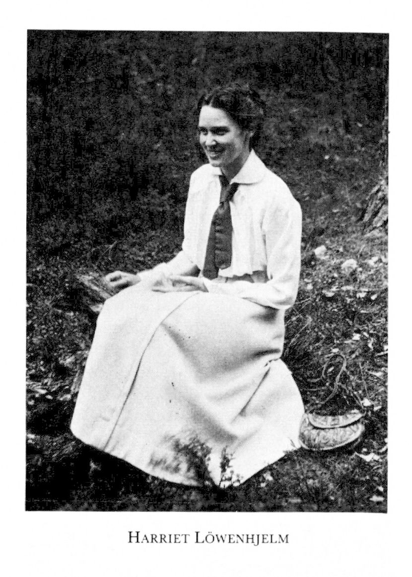 5 Löwenhjelm, Harriet Augusta Dorotea, f 18 febr 1887 i Helsingborg, d 24 maj 1918 på Romanäs sanatorium, Säby, Jönk (enl db för Hedv El, Sthlm). Föräldrar: översten kammarherre Gustaf Adolf L o Margaretha (Maggie) Dickson. Elev vid Anna Sandströms h lärarinnesem periodvis 03–07, vid Kerstin Cardons målarskola 07–08, vid FrKA 08–11, hos Carl Wilhelmson 11–13, vid FrKA:s etsningsskola 11–13. Konstnär, förf. – Ogift.