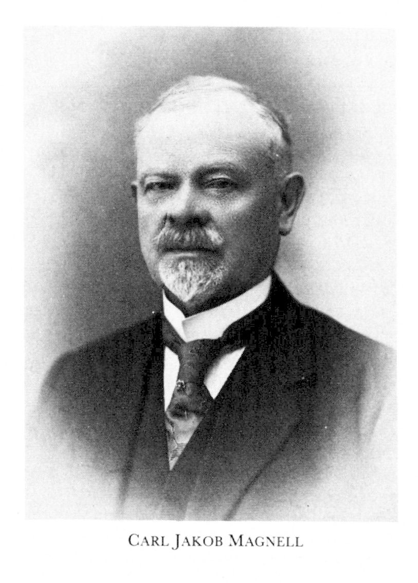 Magnell, Carl Jakob, f 19 maj 1857 i Kristinehamn, d 12 sept 1928 i Helsingör (enl db för Bromma, Sthlm). Föräldrar: kontraktsprosten Johan Jakob M o Elise Laurell. Elev vid lägre allm lärov i Kristinehamn ht 66–vt 72, vid tekn elementarskolan i Norrköping 2 sept 72–31 maj 75, ord elev vid Teknol inst (KTH från 76) 13 sept 75, inskr vid StH 78–79, avgångsex från KTH:s avd för väg- o vattenbyggnadskonst 15 april 79, ingenjör vid sänkningen av Hjälmaren o Kvismaren 79–82, arbetschef vid sänkningen av Mosjön 83, vid Olandsåns reglering 84, vik lektor i byggnadskonst vid tekn elementarskolan i Norrköping vt 85, lektor i byggnadskonst vid tekn elementarskolan i Borås 85–95, innehade Borås ingenjörsbyrå 86–95, led av vattenledn:styr i Borås 86–95, brandchef där 91–95, lektor i mekanik vid tekn elementarskolan i Norrköping 95–98, arbetschef vid ombyggn av Uddevalla–Vänersborg–Herrljunga järnväg 98–99, trafikchef o ban- o maskiningenjör där 98–03, led av vattenledn:styr i Vänersborg 98–03, prof i väg- o vattenbyggnadskonst vid KTH 20 nov 03–12 sept 22, led av komm ang trafiksäkerheten för ensk järnvägar dec 04–sept 07, av styr för Trollhätte kanal- o vattenverk 05–08, av vattenfallsstyr 09–28, rektor vid KTH 25 juni 09–12 sept 22, led av styr där 09–21, sakk i utredn ang den högre tekn undervisn:s ordnande sept–dec 10, ordf i KTH:s nybyggnadskomm 12–17, led av komm ang nya stadgar för KTH juni–dec 17.