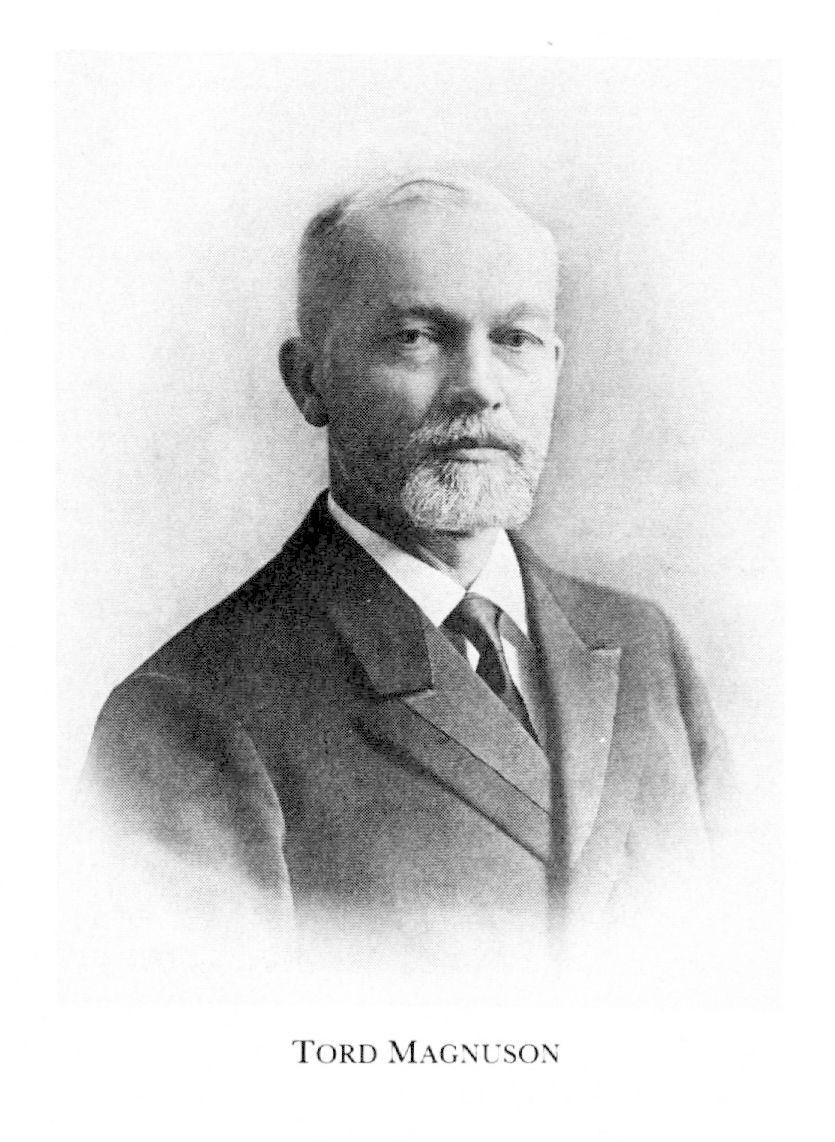 1 Magnuson, Tord Alarik, f 25 nov 1851 i Flosjötorp, Grythyttan, Ör, d 3 mars 1929 i Högbo, Gävl. Föräldrar: bruksägaren Carl M o Carin Magnusson. Mogenhetsex vid Växjö h elementarlärov 20 maj 71, inskr vid UU 15 sept 71, med fil ex där 30 jan 73, extra elev vid Teknol inst 10 febr 73, ord elev 15 sept 74, avgångsex från fackskolans för bergsvetensk underavd för metallurgi o hyttkonst där 30 okt 75, hyttingenjör vid Åry masugn, Hemmesjö, Kron, 76, ritare o kemist vid Sandvikens jernverks ab 77, chefsingenjör vid tråddrageriet 78–82, vid hyttor o bessemerverk där 82–93, led av Gävleborgs läns landsting 87–18, ordf där 16–18, ordf i kommunalfullm i Sandviken 90–13, kontorschef vid Sandvikens jernverks ab 93, led av styr för Norbergs elektriska ab från 93, ordf i styr för Skogens kolab från 97, VD där från 10, disponentassistent vid Sandvikens jernverks ab 98, ordf i styr för Bispbergs ab från 98, led av FK 07–10 (lagutsk o andra särsk utsk 10), av patentlagstiftningskomm mars 08–april 22, av komm ang mineralfyndigheter å kronojord nov–dec 09, disponent o VD vid Sandvikens jernverks ab 10–20, ordf i styr där från 17, ordf i styr för Holmgrufve ab från 11, i handelskammaren i Gävle från 11, led av styr för ab Expressdynamit från 12, inspektor för Bergshögsk i Falun från 13, ordf i styr för Högbobruks ab från 14, för Krångede ab från 17, för Kungsgrufve ab från 17, eo fullm i JK 19–28. – JK:s stora GM 21.