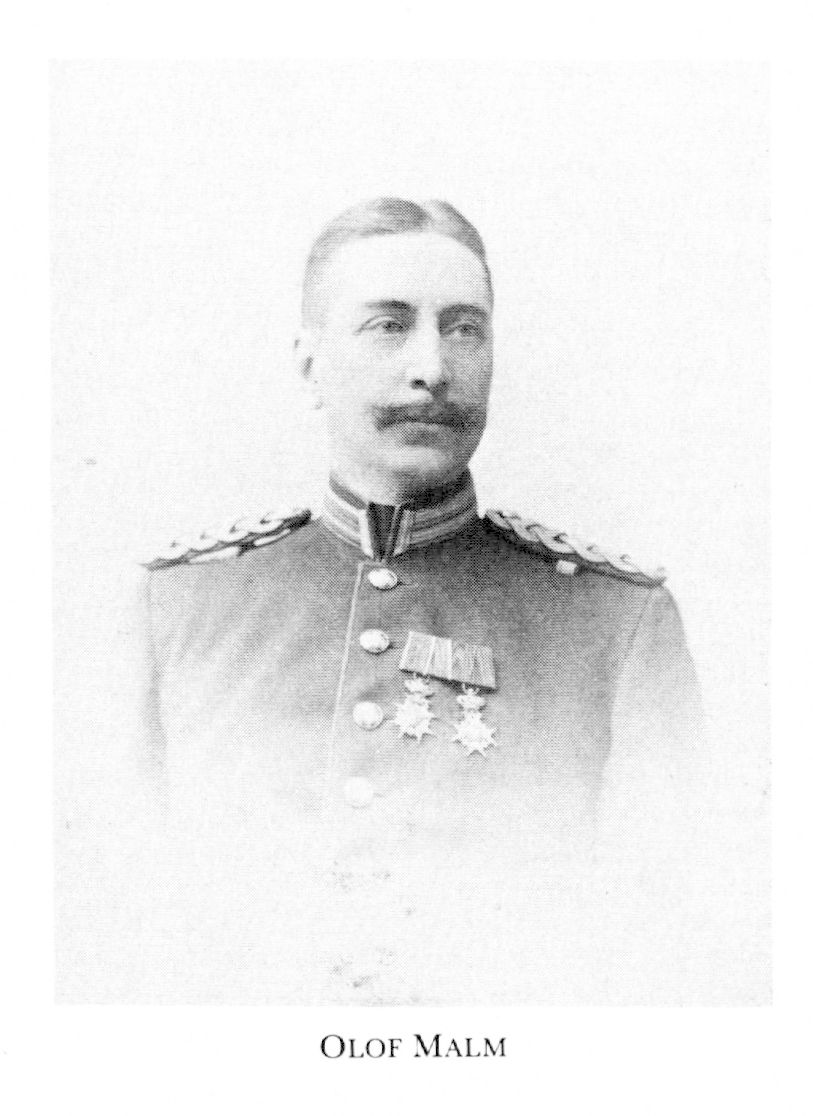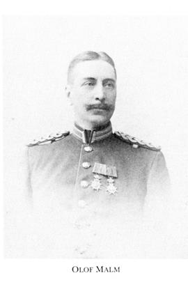 Malm, Olof Bernhard, f 3 jan 1851 i Kviinge, Krist, d 18 febr 1939 i Sthlm, Engelbr. Föräldrar: lantbrukaren Hans Magnus M o Hanna Christensdtr. Studentex vid h a l i Växjö 8 dec 70, kadett vid krigsskolan 3 april 71, officersex där 30 nov 72, underlöjtn utan lön vid N skånska infanterireg 6 dec 72, underlöjtn på stat där 20 febr 74, genomgick generalstabskursen vid krigshögsk 15 juli 74–8 april 77, aspirant vid generalstaben 1 okt 77–31 mars 80, löjtn i nämnda reg 27 sept 78, stabsadjutant o löjtn vid generalstaben 12 nov 80, placerad vid lantförsvarsdep:s kommandoexp bl a 1 jan 81–1 nov 82, i utl trupptjänst nov 82–april 84, adjutant vid arméförvaltn:s intendentsdep 1 juli–25 aug 84 o 2 jan 86—89, lär i militärförvaltn vid krigshögsk 1 aug 84–1 aug 92, adjutant vid generalstabens militärstatistiska avd 6 sept 84–1 mars 85 o 1 nov 90–91, led av styr för Evangeliska fosterlandsstiftelsen 85–98, 07–10 o 12–21, ordf där 18–21, adjutant hos chefen för generalstaben 1 mars 85–2 jan 86, kapten vid generalstaben 20 mars 85, sekr i fältförvaltn:- o etappreglementeskomm nov 88–92, kapten i N skånska infanterireg 1 nov 89, stabschef vid andra arméfördeln 19 sept 91–95, överadjutant o major vid generalstaben 2 sept 92, led av militära fredsförvaltn:komm:erna april 93–dec 97, stabschef vid fjärde arméfördeln 11 febr 96, överstelöjtn o förste major vid Skaraborgs reg 9 okt 96, vid Svea livgarde 1 juli 97, överste o chef för Bohusläns reg 7 nov 98, led av förstärkta infanteriexercisreglementeskomm okt 03, generalmajor i generalitetet o tf chef för femte arméfördeln 12 april 07, chef för femte arméfördeln 5 juni 07, led av 1907 års generalkommission ang rikets försvar sept 07–maj 08, statsråd o chef för lantförsvarsdep 31 dec 07–7 okt 11, ordf i Fören för befrämjande av skolungdomens vapenövn:ar 10–20, chef för fjärde arméfördeln 26 okt 10, ordf i dir över GCI 20 okt 11–mars 19, i krigshovsrätten 1 nov 11–dec 15, chef för femte arméfördeln 2 nov 11, ordf i Sveriges landstormsfören:ars centralförb 12–20, sakk i komm ang infanteriskjutskolans förläggn okt 13–febr 15, led av bl a kyrkorådet i Engelbrekts förs, Sthlm, 14–26, av 1914 års generalkommission ang ny värnpliktslag o härordn april–maj 14, generallöjtn i generalitetet 20 maj 14, avsked med skyldighet att inträda i generalitetets reserv 30 mars 17, led av allm kyrkomötet 20. – LKrVA 92.