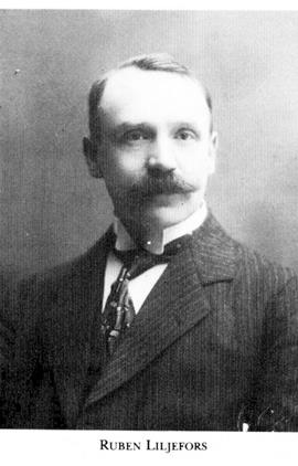 2 Liljefors, Ruben Mattias, bror till L 1, f 30 sept 1871 i Uppsala, d 4 mars 1936 där. Mogenhetsex vid h a l i Uppsala vt 90, inskr vid UU 11 sept 90, FK 14 sept 95, studier för I Hedenblad i Uppsala, kompositionsstudier för Salomon Jadassohn vid musikkonservatoriet i Leipzig 95—96 o 97—99, organistex vid musikkonservatoriet i Sthlm (MK) 00, dirigentstudier för Hermann Kutzschbach i Dresden 02, vik anförare för Allm sången i Uppsala 02, sånglär vid Gbgs h samskola 02—08, dirigent för Göta Par Bricoles sångkör i Gbg 02 - 11, kormästare för Gbgs Filharmoniska sällskap 02—11, sånglär vid Sigrid Rudebecks flickskola 03-08, dirigent för Gbgs studentkårs sångkör 03—09, kyrkosångarex vid MK 07, kompositionsstudier för Felix Draesecke i Dresden o Max Reger i Leipzig 09— 11, ledare för Sångsällsk TS i Gbg 10—11, kapellmästare för Gävleborgs läns orkesterfören 12—31, ledare för musiksällsk Concordia i Gävle 12—31, musiklär vid h a l i Gävle 31 dec 12—31. Tonsättare. — LMA 08, Litt et art 27.