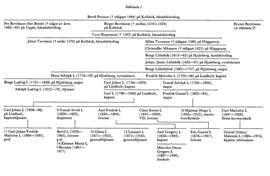 Enligt 1500-talsuppgift (E 8676) härstammar släkten L från en Måns Persson på Kolbäck i Bergstena, Älvsb. Dennes son Per Månsson skall ha varit ingift i släkten Bonde. Dessa båda led har emellertid ej säkert kunnat identifieras i samtida handlingar. Den senare uppges ha varit far till väpnaren Bertil Persson (d tidigast 1494) på Kolbäck eller Kolbäckstorp, som var häradshövding i Kulling (ej Kålland) åtminstone 1462—94 o i Bjärke åtminstone 1465—86. Hans son Per Bertilsson eller Per Bonde (d något av åren 1482—85) på Upplo i Magra, Älvsb, var 1481 häradshövding i Ale. En annan son, Brynte Bertilsson (d 1510), som också skall ha bott på Upplo (Biskop Hans Brasks släktbok), var häradshövding i Kulling (ej Bollebygd) åtminstone 1496—97 o hade senare en tid Bjärke härad i förläning (BSH). Enligt Yngsta rimkrönikan stupade han mot danskarna i striden vid Örkelljunga, Krist, o Olaus Magnus har skildrat, hur änkan lyckades återfå hans lik, som av hans söner bars hem till Västergötland på sju dagar. En dansk visa uppger, att B i denna strid var svenskarnas banérförare o blev nedhuggen av danskarnas befälhavare Tyge Krabbe. Hans son riksrådet Måns Bryntesson (L 1) var far till Ebba Månsdtr (L 3).