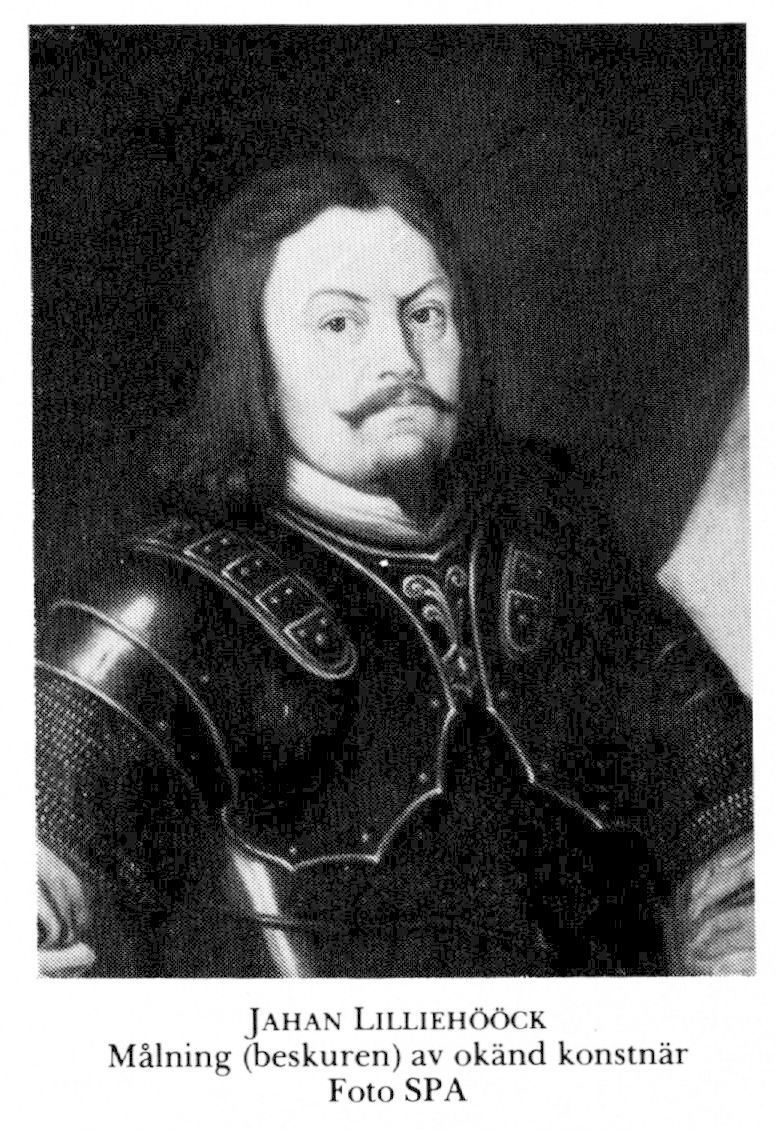 6 Lilliehööck, Johan (Jahan), son till L 4 i hans första gifte, f 1598, d 23 okt 1642 i slaget vid Leipzig. Inskr vid UU 8 dec 15, fänrik vid kungens livg 18, kapten vid Nils Ribbings reg från Österbotten 23, vid Kristoffer Mannerskölds reg från Finland 24, överstelöjtn vid Österbottens reg 16 febr 26, överste för Björneborgs reg hösten 28—1 mars 30, för ett reg från Västergötland mars—maj 30, för Västmanlands reg 31—34, deltog i riksdagarna 33 o 38, insp över garnisonen i Riga 8 okt 33, häradsh i Hammarkinds hd, Ög, 9 maj 34, generalmajor över fotfolket i Livland 24 okt 34 (ny fullm 10 aug 35)-14 juni 38 (SKF), häradsh i Sundals hd, Älvsb, 7 juni 37, guvernör över Hinterpommern o kommendant i Stettin 31 maj 38, rikstygmästare 24 mars 42.