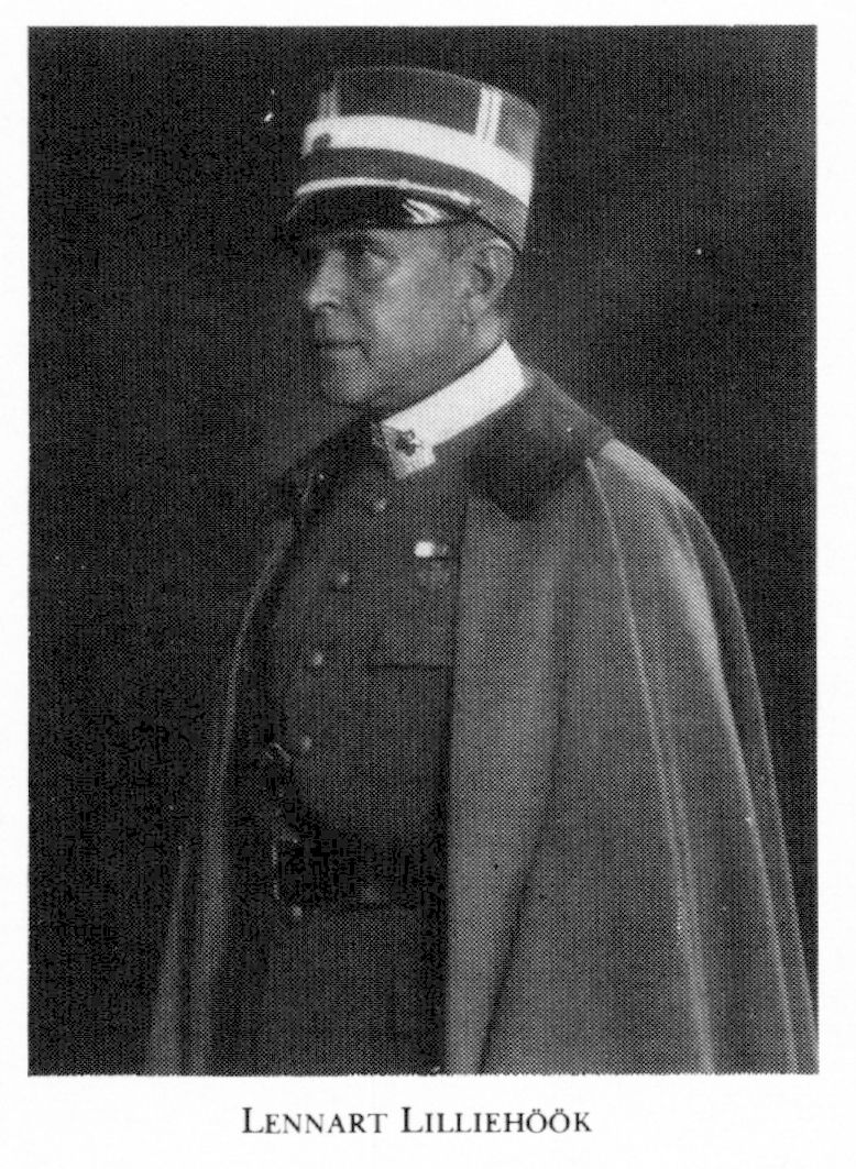 13 Lilliehöök, Lennart, bror till L 12, f 9 sept 1872 i Ovansjö, Gävl, d 7 okt 1950 på Kämpasten, Sigtuna (enl db för Osc, Sthlm). Mogenhetsex vid h a l i Gävle 20 maj 90, volontär vid Göta art:reg 4 juni 90, officersex vid krigsskolan på Karlberg 31 okt 93, underlöjtn i Göta art:reg 17 nov 93, vid Andra Svea arttreg 13 sept 94, vid Svea art:reg 3 juni 98, aspirant vid Generalstaben 1 okt 00—31 mars 03, stabsadjutant o löjtn vid Generalstaben 4 dec 03, kapten i Generalstaben o i Upplands art:reg 2 juni 05, vid Generalstaben 16 febr 06, lärare i krigskonst vid art:- o ingenjörhögsk 1 jan 09, generalstabsofficer vid 5:e arméfördeln 15 april 09, kapten vid Upplands art: reg 31 aug 10, major i armén 12 sept 13, överadjutant o major vid Generalstaben 28 mars 14, stabschef vid 1:a arméfördeln 1 jan 15, överstelöjtn vid Generalstaben 28 juli 16, vid Wendes art:reg 1 jan 18 (utn 4 dec 17), överste i armén 19 dec 19, ensamutredare ang förvaltn:- o handräckn:tjänst inom armén nov 20—jan 21, överste o chef för Wendes art:reg 16 sept . 22, överste o brigadchef vid Östra arméfördeln 1 jan 28, inspektör för militärlärov 1 jan 28—3 nov 32, generalmajor i armén 23 maj 30, led av dir för GCI 1 juli 30—3 nov 32, chef för Västra arméfördeln 4 nov 32—30 sept 37, generallöjtn 23 maj 1937, ordf i styr för Sv Veritas försäknab från 40, för Försäkr:bol Göta från 40, för Försäknbol Tor från 41, inspektör för arméns motorfordonstjänst 41—45, ordf i styr för Försäkr:bol Liv-Göta från 42. — LKrVA 15 (styresman 41—43).