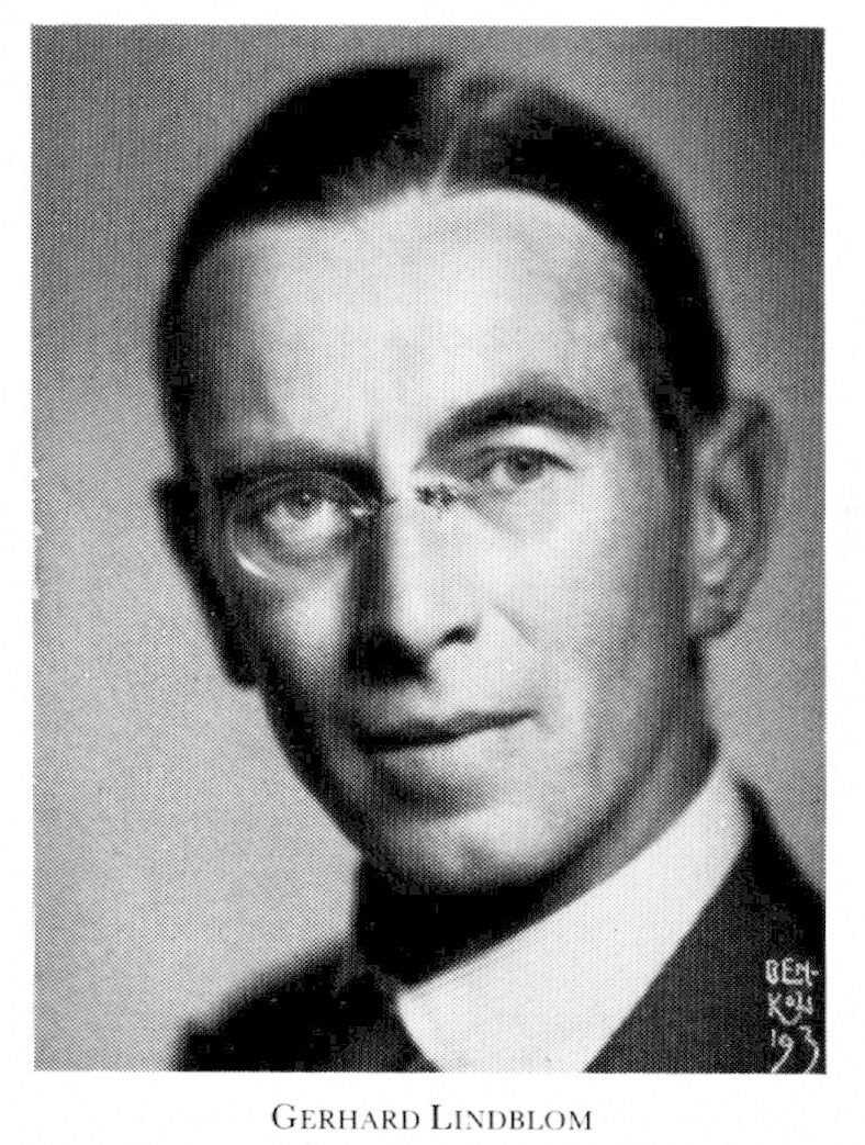 Lindblom, Karl Gerhard, f 26 aug 1887 i Åby, Kalm, d 14 juni 1969 i Sthlm, Ad Fredr. Föräldrar: kontraktsprosten Axel Ferdinand L o Lydia Karolina Uddenberg. Mogenhetsex vid h a l i Kalmar 13 maj 06, inskr vid UU 28 jan 07, underlöjtn i Kronobergs reg:s reserv 31 dec 08, FK vid UU 27 maj 09, forskn: resor till eng o tyska Ostafrika 10—12 o till Kenya o Uganda 20, e amanuens vid Riksmuseets etnografiska avd 15 aug 12—14, löjtn i reg.s reserv 1 okt 14, assistent vid nämnda avd 1 jan 15, FL vid UU 1 febr 15, disp 27 maj 16, FD där 31 maj 16, tf intendent o förest vid nämnda avd 17 aug 23, kapten i reg:s reserv 7 mars 24, sekr i Sthlms naturve-tensk fören 25—33, ordf där 34—59, museias-sistent 1 juli 26, prof o förest vid nämnda avd (från 35 Statens etnografiska museum) 1 jan 29-30 juni 54, ordf i Travellers' Club 30-58, i Sv sällsk för antropologi o geografi 33 — 34, lär i allm o jämförande etnografi i StH 33 — 54, led av Ekumeniska nämnden 41, ordf i Sthlms arbetarinst 46—65.