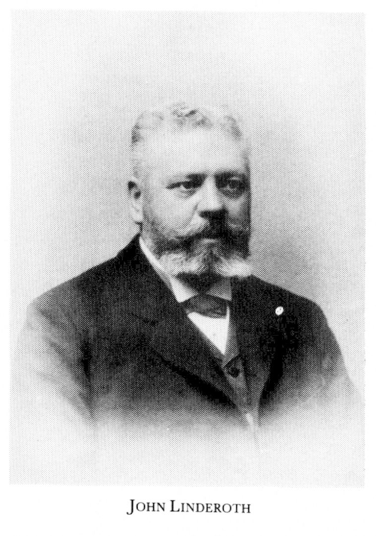 2 Linderoth, John Gustaf, son till L 1, f 18 maj 1848 i Sthlm, Klara, d 2 maj 1924 där, ibid. Elev vid Klara elementarlärov 56–63, anställd vid G W L:s urfabrik 15 dec 63, elev i slöjdskolan vid Teknolog inst 64–65, studier i utlandet 67–70, tillstånd att driva handel under firma Gustaf Wilhelm L 9 april 72, v ordf i Sthlms urmakare-societet 72 (ordf där 92), fullm i Sthlms fabriksfören 81, kassaförvaltare 92, ordf där 17, hovurmakare 84, dir i Fabriksfattigkassan 88, kassaförvaltare 92, ordf där 96, ordf i Sveriges urmakareförb 92 (HedL 02), borgare i Sthlm 90, led av Borgerskapets femtio äldste 97 (ordf 03), led av Borgerskapets bemedhkommission 97 (v ordf 09), ordf i Sv urmuseets nämnd 04, led av stadsfullm i Sthlm 04–06, av Klara förs:s fattigvårdsstyr 09–12, kyrkofullm där 10. — Litt et art 98. - Ogift.