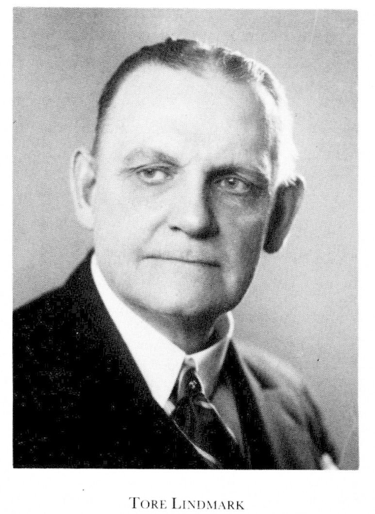 Lindmark, Tore Gustaf Emanuel, f 26 okt 1872 i Sthlm, Skeppsh, d 10 nov 1956 där, Engelbr. Föräldrar: kommendören Carl Gustaf L o Jenny Carolina Charlotta Wahlberg. Mogenhetsex vid Nya elementarskolan i Sthlm 13 maj 90, ord elev vid KTH 15 sept 90, avgångsex från dess fackavd för maskin-byggn:konst o mek teknologi 10 juni 93, utvidgad ex där 9 juni 94, anställd vid G de Lavals experimentlaboratorium 1 maj 94— mars 97, konstruktör vid ab de Lavals ång-turbin 97—11, övering där 11 — 14, led av styr där 13—17, chef för företagets ryska avd 14— 15, övering vid ab Vaporackumulator i Sthlm 1 dec 15—17, led av styr där 16—22, prof i ångmaskinlära vid KTH 31 juli 17 — 38, led av styr för statens provningsanstalt 18 — 40, prorektor vid KTH 22-27, rektor där 27-31, led av komm ang inrättande av en professur i flygteknik vid KTH juli —nov 27, av komm ang högre tekn undervisn:s ordnande dec 29 —nov 32, av 1930 års lantmäteriunder-visn:sakk okt—dec 30, av styr för Swedish Invention Corporation 31 — 33, byråchef i statens bränslekommission (gengasbyrån) 40— 44. - LIVA 19 (v preses 26-28, preses 29-31), fil hedersdr vid UU 16 sept 27, LVA 30 (preses 44-45), LFS 34, HedLIVA 37, tekn hedersdr vid KTH maj 44.