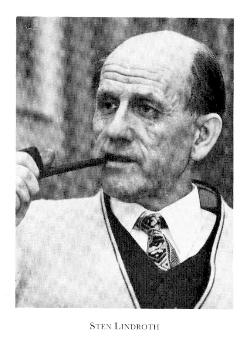 4 Lindroth, Sten Hjalmar, bror till L 3, f 28 dec 1914 i Lund, d 1 sept 1980 i Uppsala. Studentex vid Gbgs h latinlärov 3 juni 33, inskr vid UU 6 sept 33, FK 31 mars 36, FL 28 maj 40, disp 23 okt 43, doc i idé- o lärdomshist 5 nov 43, FD 31 maj 44, allt vid UU, historisk medarb vid Stora Kopparbergs bergslags ab i Falun 44—54, v sekr i Lärdomshistoriska samf 50, sekr där från 67, red för Lychnos från 50, eo doc vid UU 1 dec 52, innehavare av Emilia o Gustaf Carlbergs professur i idé- o lärdomshist där från 8 mars 57, ordf för sv landsavd av Nordiska sommaruniv 59-65, led av styr för SBL 6 juni 62-30 juni 77, av SBL:s nämnd från 77, dekanus vid historisk-filosofiska sektionen vid UU 65 — 71. - LVSU 55, LHVU 58, LSkS 58, LVHAA 59, LVS 64, LVA 66 (andre v preses 76), LSA 68, LFS 69.
