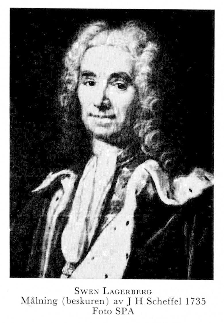 1 Lagerberg, Swen, f 28 mars 1672 på Stora Kärr, Habo, Skar, d 7 okt 1746 i Sthlm, Jak. Föräldrar: hauptm Lars Jonsson L o Anna Örnewinge. Inskr vid UU 12 dec 88, sergeant vid Skaraborgs läns infanterireg 10 febr 90, fänrik där 31 maj 95, löjtn 30 april 00, regementskvartermästare 25 april 01, grenadjärkapten 14 juli 02 (konfirm: fullm 12 sept 02), major 22 jan 09, överstelöjtn 30 aug 10, interimsöverste för Kronobergs läns reg till fot 5 okt 14, generalmajor av infanteriet o överste för Skaraborgs läns infanterireg 7 dec 17, frih 2 juni 19, presid i statskontoret 19 maj 20—23, lantmarskalk vid 23 års riksdag (vald 21 jan 23), riksråd 12 aug 23, ordf i kommissionen ang hushålln vid kopparverket i Falun 24 dec 23, greve 14 juni 31, kommissarie vid underhandlar med Danmarks o Frankrikes ambassadörer i Sthlm 6 aug 34, med Frankrikes ambassadör 28 okt 38.