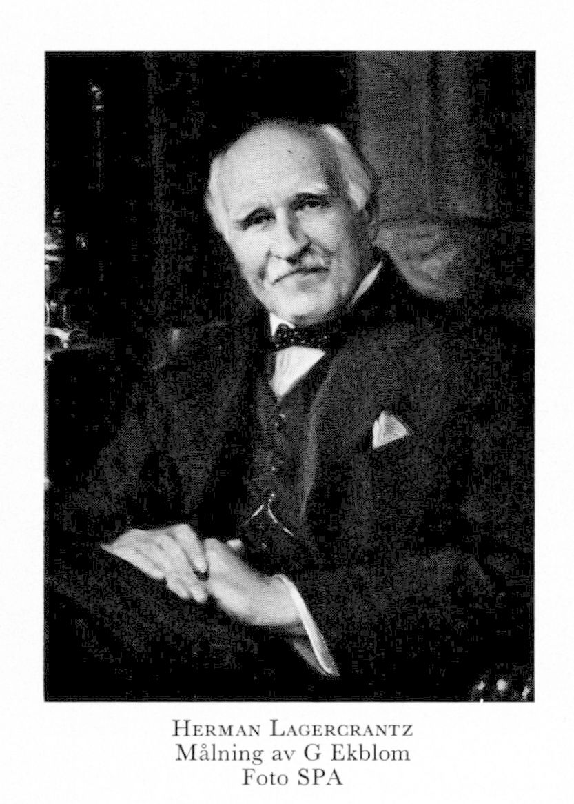 2 Lagercrantz, Herman Ludvig Fabian, f 29 juli 1859 på Barkarby, Lovö, Sth, d 27 sept 1945 i Ramnäs, Vm. Föräldrar: landshövd o statsrådet Carl Gustaf L o Augusta Emerentia Carolina Zethelius. Volontär vid Svea artillerireg 20 nov 77, mogenhetsex vid Sthlms gymn 13 dec 79, elev vid krigsskolan 14 juli 80—31 okt 81, underlöjtn vid Svea artillerireg 11 nov 81—25 jan 89, elev vid artilleri- o ingenjörhögsk 15 juli 84—87, stabskapten i frälsningsarmen 89, major okt 89, överste o chefssekr 5 maj 93, socialsekr 95, arbete vid frälsningsarmen i Indien 96, avgick ur aktiv tjänst i frälsningsarmen 97, led av styr för Frälsningsarméns förlagsab 97—07, disp för Wirsbo bruk, Ramnäs, Vm, 15 maj 97—27, ordf i styr för Ramnäs bruks ab från 99, led av styr för Larsbo-Norns ab, Vikmanshyttan, Kopp, 01—18, ordf i styr för Elfvestorps ab 02—06, för Svartelfs jernvägsab 03—07, led av styr för Hellefors bruks ab, Ör, 06—15, av komm ang ändrad organisation av telegrafstyr 22 juni 06—11 mars 07, av komm ang ändrad organisation av järnvägsstyr 4 aug 06—8 mars 07, tf envoyé i Washington 25 jan 07, envoyé där 5 juni 07, tf envoyé i Khvn 18 jan—17 juni 08, envoyé i disponibilitet 26 aug 10, ordf i styr för Bankab Sthlm—Öfre Norrland 10— 11, för Lindholmens verkstads ab, Gbg, 10— 11, för Motala verkstads nya ab 10—20, för ab Norrlandsbanken 11—17, för ab Isfjorden—Belsund 11—27, för ab Elektriska ugnar 13, för Sveriges allm exportfören 13— 35 (v ordf 11—13), drev firma Wirsbo brukshandel, H L F Lagercrantz, 13—21, ordf i City-klubben, Sthlm, 14—23, led av Drottningens centralkomm 14—33, ordf i styr för Wirsbo-Ramnäs kraftab 14—44, för Liljeholmens stearinfabriks ab 16—27, för ab Divisor 17—22, för ab Spetsbergens sv kolfält 17—23, led av styr för Frälsningsarméns krigsskolas uppfostringsfond 17-—45, sv minister i Washington 17, v ordf i ab Sv handelsbanken 19—33, ordf i styr för Ferna bruks ab 21—44, för Nya nordiska kullager ab 22—27, för Sv-tyska fören 22—30, för Gimo—Österby bruks ab 22—37, i Inst för sv utlandstjänst, Sthlm, 25—30, för Örebro pappersbruks ab 26—45, för Frövifors bruks ab 27—45, i komm för sv konstindustriutställn:ar i Amerika 27, i komm för Sveriges deltagande i världsutställn i Barcelona 28—29, för Bolinder—Munktells ab, Eskilstuna, 28—37, i Sv fattigvårdsförb:s barnavårdsbyrå, Sthlm, från 30 (led 11—23, v ordf 23—30), för Munktells mek verkstads ab 32—37.
