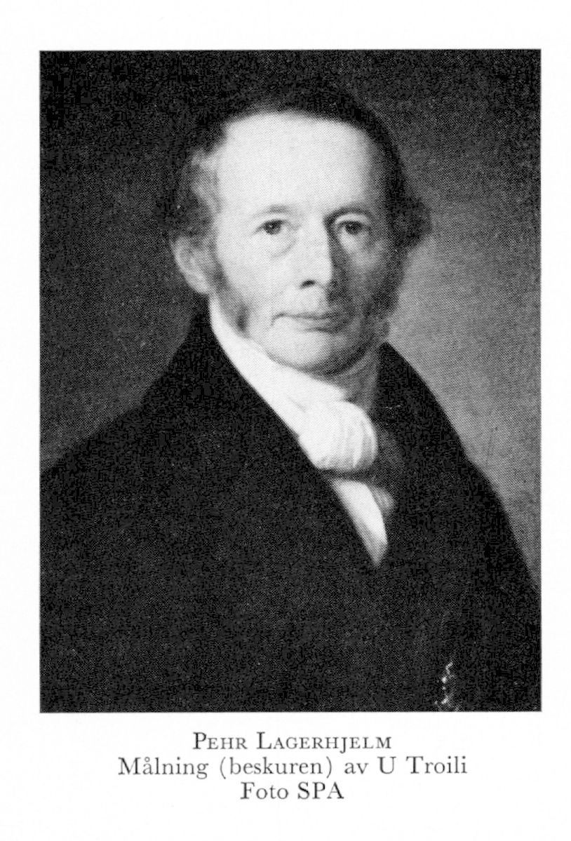 1 Lagerhjelm, Pehr, f 13 febr 1787 på Falkenå, Kräcklinge, Ör, d 18 juli 1856 på Bofors bruk, Karlskoga. Föräldrar: majoren Gustaf L o Ulrika Charlotta Lagerhielm. Inskr vid UU 17 mars 97, jur ex 04, bergsex 07, ausk i bergskoll 18 dec 07, elev vid masmästeriet 08, v notarie i bergskoll 22 mars 08, deltog i samtliga riksdagar 12—54, (led av expeditionsutsk 12, statsutsk 17—18, 23, 28—30 o 50—51, statsrevisor 17—18 o 28—30, bevilln: utsk 23, förstärkta konstitutionsutsk 23, konstitutionsutsk 34—35 o 44—45, förstärkta statsutsk 34—35, 40—41 o 44—45), ägare av Bofors bruk 12—53, geschworners fullm 25 maj 13, assessors titel 13 febr 16, assessor i bergskoll 21 jan 17—2 april 31, deläg i Rörstrands porslinsfabrik 17—47, led av flera statliga komm:er 23—-35, fullm i Jernkontoret 32—56. — LVA 15 (preses 33—34), Jernkontorets stora GM 17 o 26, LKrVA 19, LVS 19, VA:s GM 23, LMA 25.
