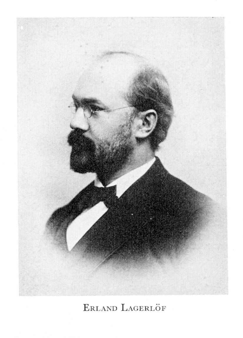 3 Lagerlöf, Erland, f 7 nov 1854 i Kristinehamn, d 23 maj 1913 i Lund. Föräldrar: regementsläkaren Magnus L o Hedvig Elisabet Margareta Clarholm. Mogenhetsex vid h a l i Karlstad 7 juni 73, inskr vid UU 15 sept 73, vid LU 4 okt 75, FK 14 sept 78, eo lär vid Lunds katedralskola 19 nov 84—vt 86, 87—88 o 92—93, lär vid fullst lärov för flickor i Lund 86—87, FL 30 maj 91, disp 25 maj 92, FD 31 maj 92, docent i teoretisk filosofi vid LU 27 juni 92—ht 97, eo lär vid h a l i Malmö 93—99, lektor i svenska o filosofi vid h a l i Västerås 22 mars 99. Översättare. — Ogift.