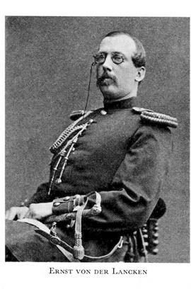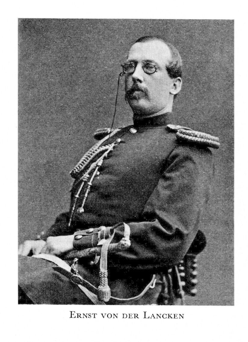 1 von der Lancken, Ernst Ferdinand, f 24 aug 1841 i Malmö, Garnisonsförs, d 18 maj 1902 i Sthlm, Hedv El. Föräldrar: överstelöjtn Gustaf Ferdinand L o Katarina Benedikta Wulff. Inskr vid LU 11 sept 58, furir utan lön i S skånska infanterireg 16 sept 58, officersex i Kristianstad 20 dec 59, underlöjtn i reg 21 aug 60, vid reg 18 sept 62, ex vid h artillerilärov på Marieberg 27 maj 63, kansliex vid LU 28 maj 64, anställd vid lantförsvarsdep:s kommandoexp 1 okt 65—29 dec 73, löjtn i armén o generalstabsofficer 13 nov 66, andre löjtn 27 jan 70, förste löjtn 4 sept 73, stabsadjutant o kapten vid generalstaben 19 dec 73, adj hos chefen för generalstaben 31 dec 73—15 aug 79, kapten i S skånska infanterireg 4 juli 78, lär i generalstabstjänst vid krigshögsk dec 78—84, stabschef vid 4:e militärdistr 15 aug 79—6 maj 81, sekr i tjänstgöringsreglementeskomm dec 80—juli 83, led där juli 83—juli 84, ånyo led okt 86—dec 88, major vid Älvsborgs reg 6 maj 81, överstelöjtn i reg 4 juni 84, överadjutant o överstelöjtn vid generalstaben 7 nov 84, avd:chef vid generalstabens militärstatistiska avd 10 nov 84—30 juli 93, inspektör för trängen 7 juni 89—1 sept 92, överste i armén 7 febr 90, tf chef för generalstaben 25 juni 92—4 okt 95, generalmajor i armén 2 nov 94, avsked ur krigstjänsten 4 okt 95, ordf i krigslagstiftn:komm dec 95—nov 96, tillstånd att inträda i generalitetets reserv 5 febr 97. — LKrVA 75. — Ogift.