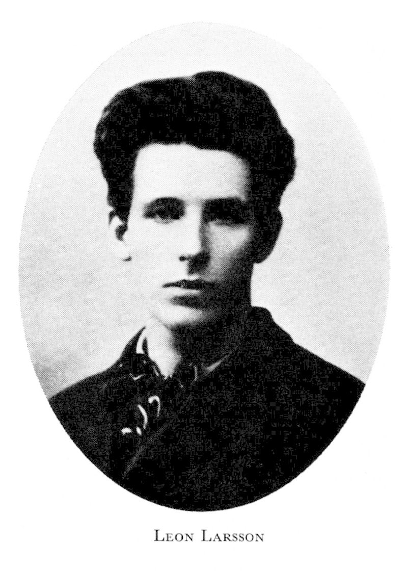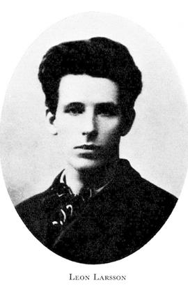 Larsson, Bror Leo (Leon) Ambrosius (tidvis Larson), f 3 aug 1883 i Älvkarleby, Upps, f 21 mars 1922 i Spånga, Sth. Föräldrar: filhuggaren Karl August L o Emma Gustafva Isaksson. Springpojke hos garverifirma i Malmö 97—98, lärling hos smidesfirman Andersson & Ekberg där, okt 98—juni 99, div anställn:ar i Sthlm från 00, medarb i Brand 04—06, i Fram 07—09, resa till USA 10. — Förf.