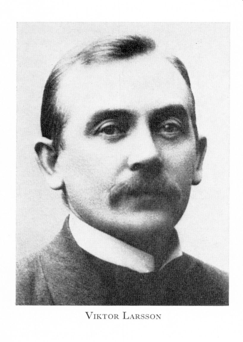 Sverges småbönder. Ett ord till de frisinnade i landet. Sthlm 1897. 7 s. (Svenska folkets öreskrifter, n:r 14.) — "Genom tvång till frihet". Ett inlägg i stridsfrågan för dagen. Halmstad 1899. 4:o. (3) s. — Organisation — kultur. Några ord till Sveriges grofarbetare af Nemo. Utg. af Ar-betsmannaförbundet. Sthlm 1899. 11 s. [Pseud.] — Bonden och arbetaren. De tu skola vara ett. Ett ord för dagen. Halmstad 1905. 40 s. — Biografiska stämningsbilder. Karlstad 1907. 103 s. — Liberalismens deka-dens. Gbg (tr Karlstad) 1907. 23 s. — Lantarbetaren och småbonden. [Omsl.] Lysekil 1907. 24 s. — Småbondeklassen vid skiljevägen. Sthlm (tr Hälsingborg) 1909. 4 s. [Anon.] [Ny uppl] 1910. — Viktor Larssons skrifter. Urval och levnadsteckning av Z. Höglund. D 1—4. Sthlm (tr Lysekil) 1910— 11. 1. Sociala spörsmål. 1910. 128 s. 2. Sociala studier och vidräkningar. 1910. 127 s. 3. Kåserier och skisser. 1910. 128 s. 4. Stäm-ningsbilder. [Omsl:] Silhuetter och stämningsbilder. (Varia.) 1911. 124 s. [Samtl även sep, med omsl även tr Sthlm.] — Bidrag i Fram, 1903, 1905—1908, Malmö, fol, o i dagspressen.