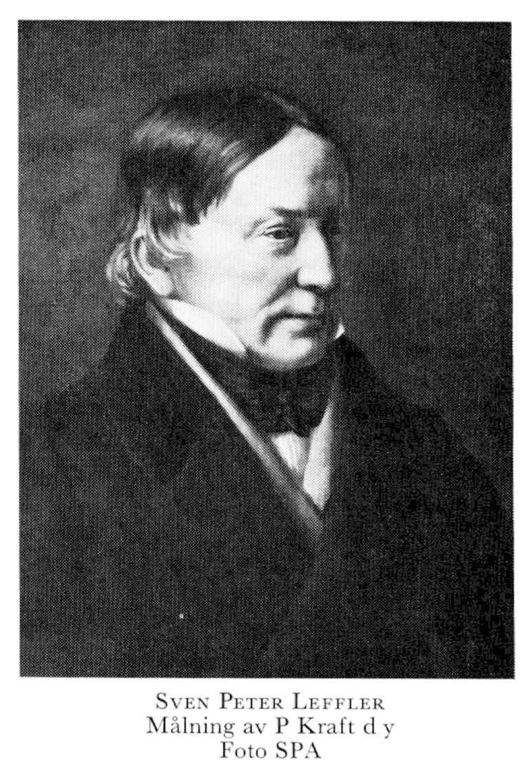 1 Leffler, Sven Peter, f 7 juni 1776 i Gbg, Domk, d 11 okt 1850 i Uppsala. Föräldrar: stadsmäklaren o skeppsklareraren Johan Håkan L o Elisabeth Kullman. Studier vid herrnhutiska skolan i Christiansfeld, Slesvig, 84—89, inskr vid LU 17 juni 89, disputerade pro exercitio där 12 november 91, inskr vid UU 6 okt 92, MD där 12 juni 97, studier i Khvn 97—98, medarb i Correspondenten, Uppsala, från 30, dess utgivare från 28 dec 32, deläg i Akad tryckeriet från 36. Skriftställare.