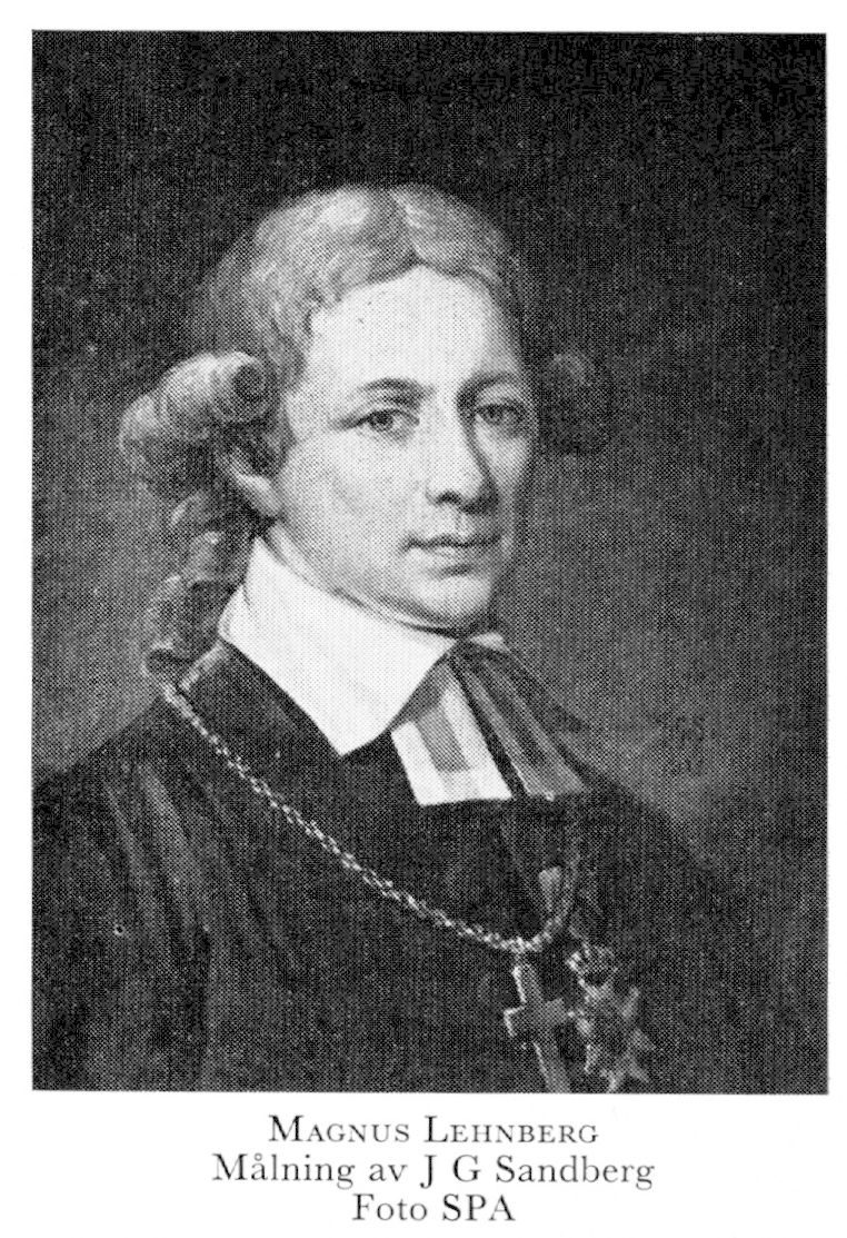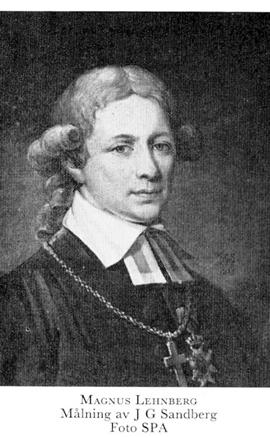 Lehnberg, Magnus, f 22 maj 1758 i S Vi, Kalm, d 9 dec 1808 i Linköping. Föräldrar: hovrättskommissarien Olof L o Anna Elisabet Vatzell. Inskr vid UU 29 aug 76, prästv i Uppsala 14 dec 85, adjunkt hos förste komministern vid Storkyrkan i Sthlm Erik Netzel 85, hovpredikant o led av hovkonsistoriet 1 juni 88, kh i Kungsholms förs 18 dec 89 (tilltr 1 maj 90)—02, assessor i Sthlms stads konsistorium 8 juni 90—29 juli 06, tillika kh i Sånga o Skå, Sth, 23 sept 90—1 maj 06, kontraktsprost 30 juni 91—29 juni 92, överhovpredikant hos änkedrottningen 11 maj 92, ordenshistoriograf 27 nov 97, TD vid UU 1 nov 00, fullm i riksgäldskontoret 12 okt 01—1 sept 06, kungens överhovpredikant 2 febr 02, preses i hovkonsistoriet 12 febr 02—13 aug 06, kh i Jakob o Johannes förs 13 april 02 (tilltr 1 maj 02), led av kanslersgillet 03, av komm ang fattigvården i Sthlm 21 maj 05—4 okt 07, biskop i Linköping från 22 okt 05 (tilltr 1 maj 06). — LSA 89, led av Sv krigsmannasällsk 96 (KrV A från 04), Hed LVVS 06.