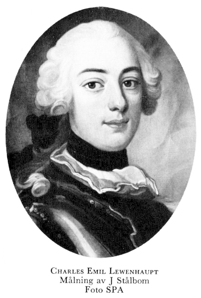 8 Lewenhaupt, Charles Emil, son till L 7, f 28 april 1721, d 29 mars 1796 på Vinas, Västra Ed, Kalm. Volontär vid Bengt Horns värvade reg 32, inskr vid LU 7 febr 34, underofficer 34, kornett vid Södra skånska kavallerireg 10 mars 37, överadjutant hos sin far 1 sept 41, löjtn vid livdragonreg 12 maj (fullm 19 aug) 42, deltog i samtliga riksdagar 46—89 (bergsdeputationen 51—52, 55—56, 65—66 o 69—70, kammar-, ekonomi- o kommersedeputationen 60—62, stora särsk deputationen 60—62, stora deputationen 65—66, SU 69—70 o 71—72, statsutsk 78—79, riddarhusutsk 86), överadjutant 9 febr 48 (med turberäkn från 1 sept 41), avsked med överstes karaktär 16 nov 70, kap-tenlöjtn o chef för livdrabantkåren 22 mars 73—22 maj 75, generalmajor av kavalleriet 22 maj 73, en av rikets herrar 27 dec 78, vald till lantmarskalk 26 jan 89. — Serafimerriddare 86.