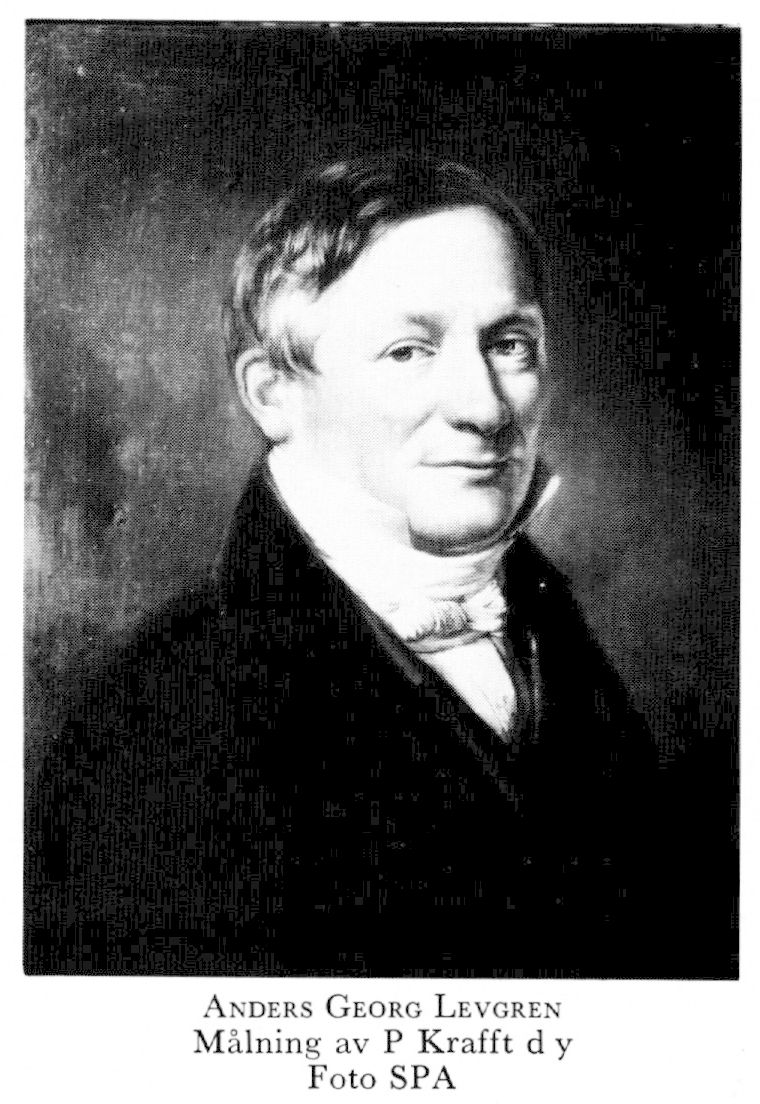 2 Levgren, Anders Georg, son till L 1, f 13 sept 1788 i Gbg, Domk, d 6 maj 1857 där, ibid. Burskap som handl i Gbg 25 jan 11, deläg i firma Lars Levgren & son 11—25 o från 44, ensam ägare 25—44, skattmästare i bibelsällsk i Gbg från 17, led av styr för handelssocieteten 18—24 o ordf där 24—26, led av dir för Gbgs sparbank från 20, av borgerskapets äldste 22—34, förest för Börsen 24—26, grundare av Gbgs handelsinst o led av dess styr 26, av Gustavi domkyrkas församl:råd, skattmästare i missionssällsk i Gbg o Gbgs barnhusstyr, i Willinska skolan 25— 40, i Kjellbergska skolan 32—39, i Fruntimmersfören:s flickskola 30—44, led av hantverksskolans styr. — LVVS 36.