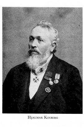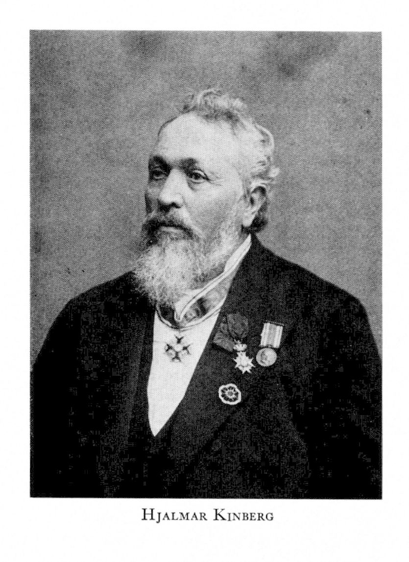 1 Kinberg, Johan Gustaf Hjalmar, f 13 maj 1820 i Grönby, Malm, d 29 aug 1908 i Sthlm, Matt. Föräldrar: kontraktprosten Johan Henrik K o Margareta Lovisa Schlyter. Genomgick Malmö skola, inskr vid LU 7 febr 38, filol kand 40, FK 4 juni 44, prom fil mag 22 juni 44, allt vid LU, studerade anatomi, fysiologi o kemi där o i Sthlm 44— 48, MK vid LU 6 juni 48, ML där 5 dec 49, disp där 8 dec 49, kir mag vid Kl 29 april 50, avlade ämbetsprovet 6 maj 50, underläk vid danska armén i Slesvig 24 juli—24 okt 50, MD vid LU 13 sept 50, stipendiat vid K M:ts flotta 12 maj 51—29 juni 52, uppbörds-läk o zoolog på korvetten Eugenie vid dess världsomsegling 25 juli 51—53, bataljonsläk vid flottans station i Karlskrona 29 juni 52—20 sept 53, tf prosektor o anatomie adjunkt vid Kl 22 sept 53, fattigläk i Kungsholms förs, Sthlm, 1 nov 53, tf andre prof vid Veterinärinrättn (från 67 Veterinärinst) där maj—dec 54, tf adjunkt där 29 jan 55, tf lär i zoologi vid Skogsinst 22 sept 55, tf prof vid Veterinärinrättn 28 nov 56, prof 6 aug 59—26 okt 86, dessutom förest där 21 okt 59—62 o 72—86. — VHAA:s GM 71.