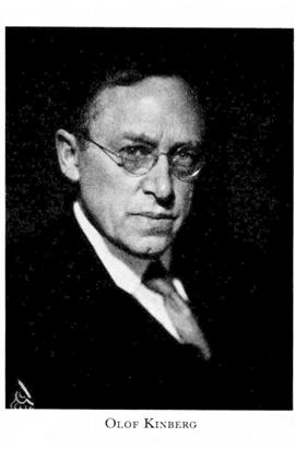 2 Kinberg, Olof Vilhelm, f 23 sept 1873 i Laholm, d 6 april 1960 i Saltsjöbaden, Sth. Föräldrar: regementsveterinären Wilhelm Henrik Jacob K o Selma Constance Kull. Mogenhetsex i Halmstad vt 92, inskr vid LU ht 92, med fil ex där 14 dec 93, MK vid Kl 14 maj 98, bitr läk o underläk vid Uppsala hospital periodvis 99—06, ML vid UU 28 maj 04, leg läk 30 maj 04, överläk vid Sthlms stads provisoriska sinnessjukhus 5 okt 06—30 sept 08, dir o överläk vid Sthlms stads sinnessjukhus vid Långbro 29 maj (tilltr 1 okt) 08—1 nov 27, disp vid Kl 29 maj 08, MD 30 maj 08, sakk ang sinnesundersökn av vissa brottslingar juni 08—09, doc i psykiatri o rättspsykiatri vid Kl 10 jan 09—4 okt 18, led av styr för statens vårdanstalt för alkoholister på Venngarn 10, expert åt komm ang sinnessjukstadgan mm sept 13—nov 23, expert i alkoholistvårdsfrågor hos socialstyr 1 jan 16—48, medl av arméförvaltn:s sjukvårdsstyr:s vet råd 18—40, led av komm ang ungdomsbrottsligheten nov 18 —okt 22, av styr för statens tvångsarbetsanstalt vid Svartsjö 20—38, av komm ang utarb av reglementen för statens tvångsarbetsanstalter juli—dec 20, sinnessjukläk vid centralfängelset på Långholmen o lär i rättspsykiatri vid Kl 1 jan 21—39, prof:s namn 22 juni 21, bitr lär vid StH:s jur fak 31, led av socialvet forskn:nämnden vid StH 31, av komm ang reform av fångvårdens straffsystem april 34—sept 38, expert åt komm ang skyddshemsverksamheten juli 34—36, led av strafflagberedn okt 38—dec 39, av komm ang inrättande av ett samhällsvet forskn: råd nov 43—maj 44, förest för kriminologiska inst vid StH från 11 juni 47. — Iqml 48, jur hedersdr vid UU 31 maj 50.