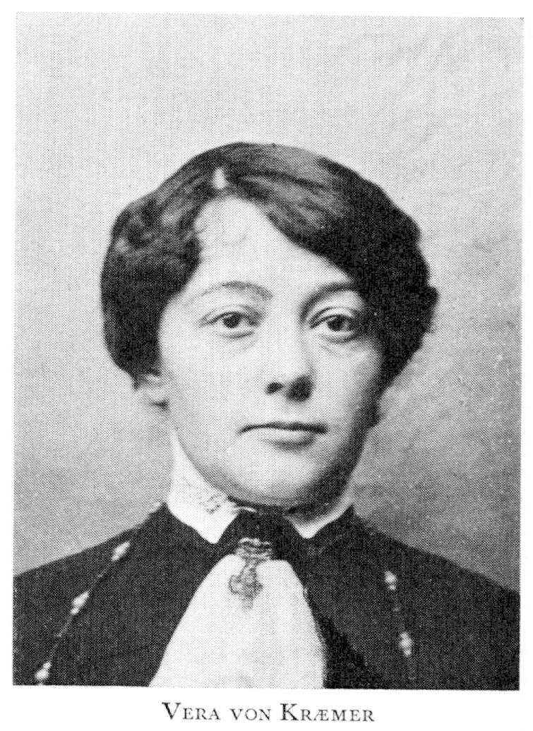 Den blandning av rastlös målmedvetenhet o osäkerhet, som var utmärkande för K ännu under hennes tidiga vuxna liv, beskrivs av ungdomsvännen Mia Leche-Löfgren. Vera Branting – som hon då kallade sig, innan hon som vuxen återtog namnet v Kræmer – synes ha upplevt åren i Whitlockska o Wallinska skolorna som en svår plåga, troligen inte minst genom den politiska ovilja mot familjen Branting som isolerade henne. Trots "en karolins själ" lämnade hon Wallinska skolan efter två ringar. "Så begåvad att hon kunde ha klarat vilket yrke som helst" är väninnans omdöme. Politiska slitningar även inom den närmaste släktkretsen framkallades emellertid ännu av storstrejken 09; bl a skedde en brytning mellan Hjalmar Branting o svågern högerpolitikern o sekreteraren i Allmänna valmansförbundet Axel Jäderin (bd 20).