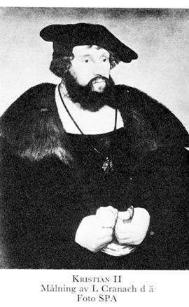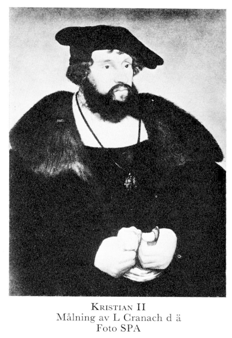 Kristian II (Christiern), f 2 juli 1481 på Nyborgs slott, Danmark, d 25 jan 1559 på Kalundborgs slott. Föräldrar: konung Hans (bd 18) av Danmark, Norge o Sverige o Kristina (s 571) av Sachsen. Hyllad som tronföljare i Danmark 87, i Norge 89 o i Sverige dec 97, vald till sv tronföljare maj 99 men avsatt jämte fadern 01, ståthållare i Norge 06—12, vald till dansk o norsk konung sommaren 13, krönt till dansk konung i Khvn 11 juni 14 o i Oslo juli 14, krönt till svensk arvkonung i Sthlm 4 nov 20, flydde efter uppror i Sverige jan 21 o Danmark jan 23 till Nederländerna i april 23, misslyckat försök att återta Norge 31, fången på Sönderborgs slott 32—49, på Kalundborgs slott från 49.