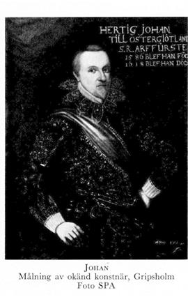Johan, f 18 april 1589 i Uppsala, d 5 mars 1618 på Bråborgs slott, Dagsberg, Ög. Föräldrar: konung Johan III o Gunilla Bielke. Fick Åbo o Bråborgs slott o län 90 (tilltr ej), hertig av Östergötland 00 (tilltr 06).