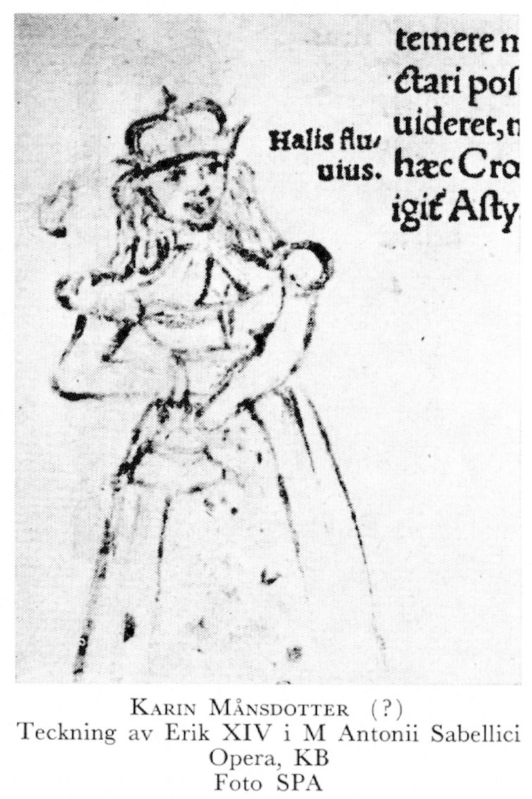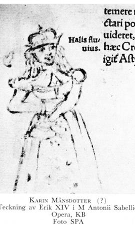 Karin Månsdotter, f 6 nov 1550 i Sthlm, d 13 sept 1612 på Liuksiala kungsgård, Kangasala, Tavastehus län, Finland. Föräldrar: stockeknekten Måns o Ingrid (Jakobsdtr?). Krönt till drottning av Sverige i Storkyrkan, Sthlm, 5 juli 68.