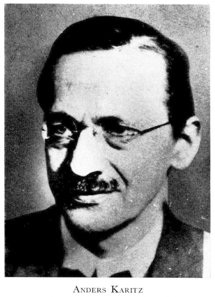 Karitz, Anders, f 28 febr 1881 i Ö Sönnarslöv, Krist, f 10 febr 1961 i Uppsala. Föräldrar: torparen Per Henriksson o Johanna Nilsdtr Karitz. Mogenhetsex vid Ystads h a l 30 maj 00, inskr vid LU 14 sept 00, teol-fil ex 31 maj 01, teol studier under fem år, FK 31 maj 10, FL 31 jan 11, disp 28 maj 13, FD 31 maj 13, doc i teoretisk filosofi 2 juli 13, allt vid LU, tf prof i filosofi vid GH 1 sept 18—31 aug 19, resestip 22—24, prof i filosofi (med undervisn- o examensskyldighet i teoretisk filosofi) vid UU 12 jan 34—31 maj 46, stiftade Fören för filosofi o specialvetensk 35, led av styr där 35. — LVSL 20, LHVU 34. — Ogift.