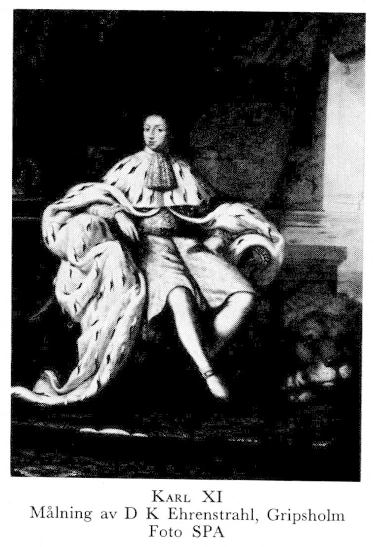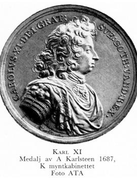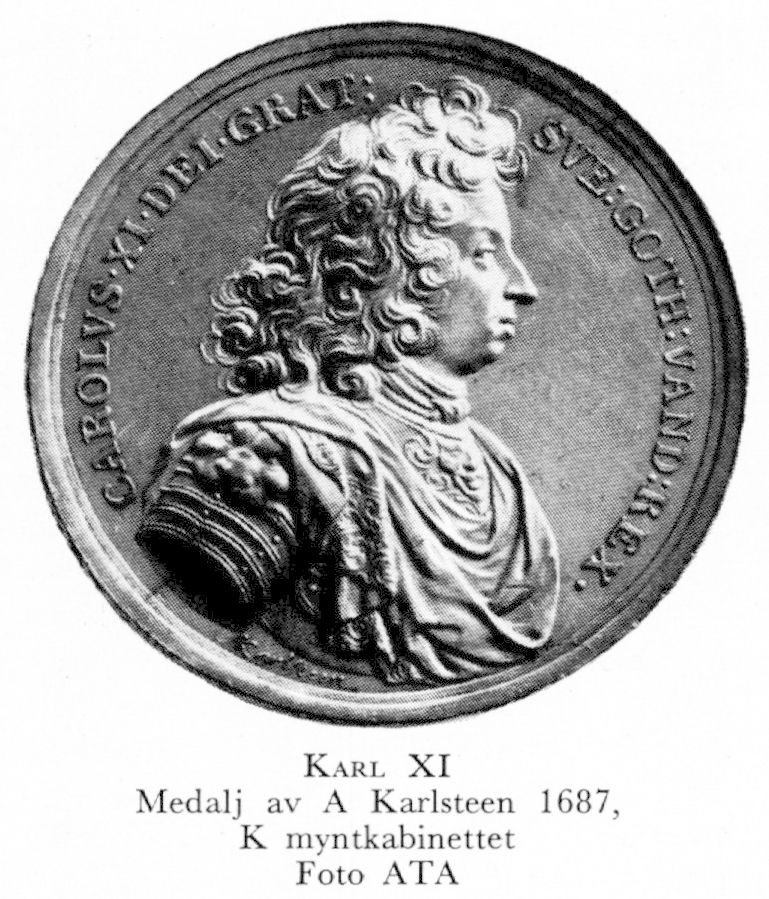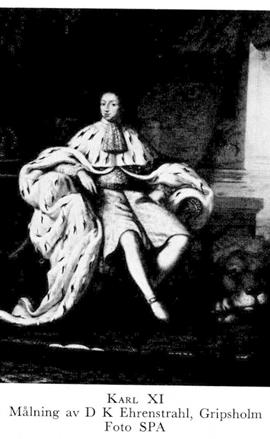 Karl XI, f 24 nov 1655 på Sthlms slott, d 5 april 1697 där. Föräldrar: konung Karl X Gustav o Hedvig Eleonora av Holstein-Gottorp. Hyllad som konung av ständerna i Gbg 1 mars 60, övertog styrelsen 18 dec 72, krönt i Uppsala domkyrka 28 sept 75.