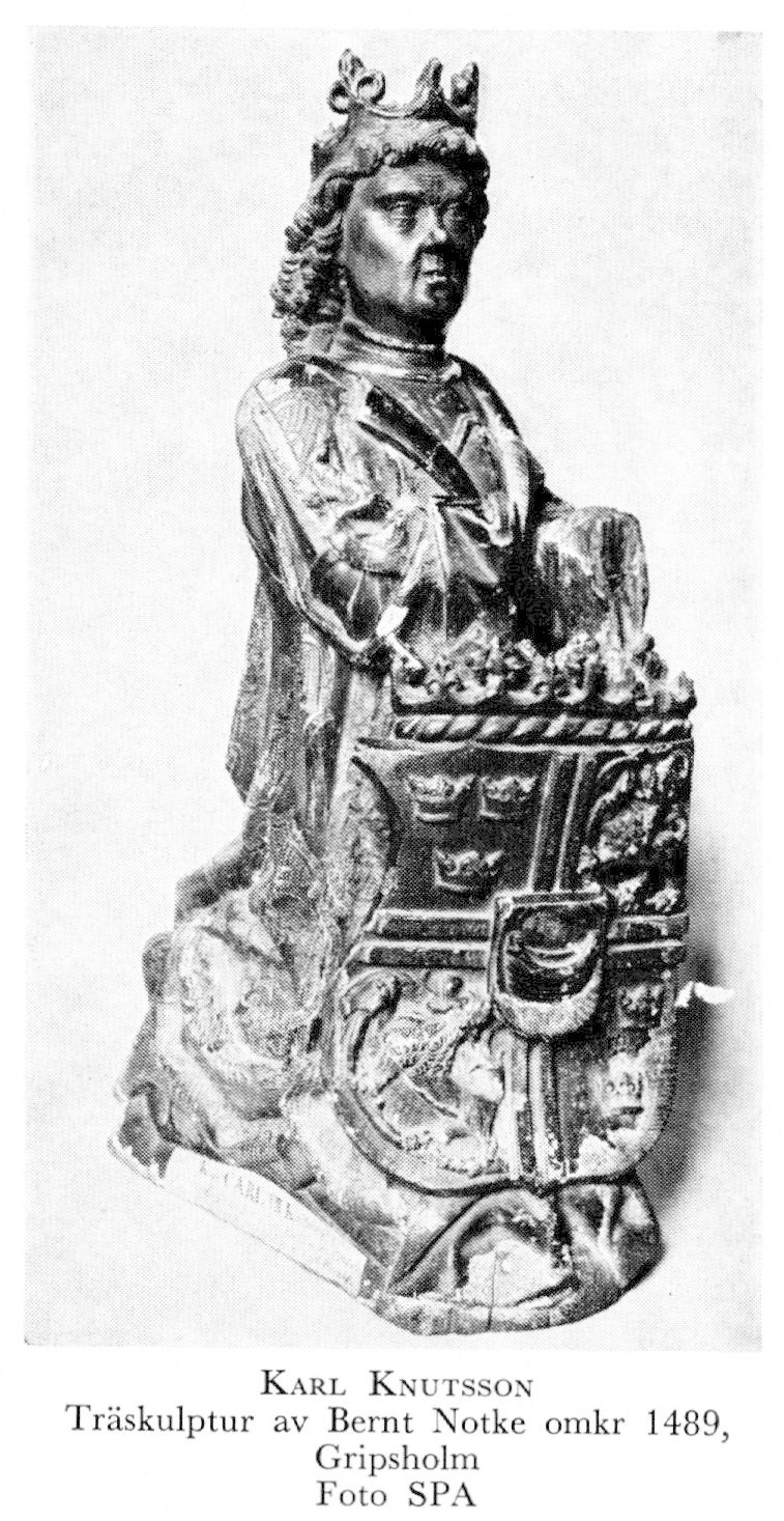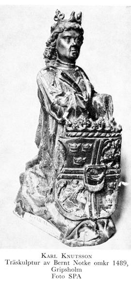 För samtid o eftervärld har K:s öden framstått så mycket mer gripande som de synts avteckna sig mot ett — i yngre dagar — glansfullt uppträdande o ett ståtligt yttre. Bernt Notkes trästatyett (nu på Gripsholm men ursprungligen sammanhörande med S:t Göransgruppen i Sthlms Storkyrka o sannolikt ett av de äldsta kända porträtten i den sv konstens historia) visar emellertid endast bilden av en trött äldre man. Kanske är den dock realistisk, ty skriftkällorna ger närmast vid handen, att K redan flera år före sin död var åldrad o djupt besviken.