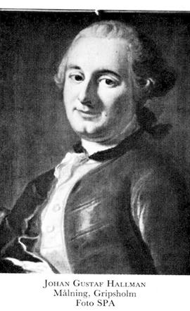 2 Hallman, Johan Gustaf, son till H 1 i dennes första g, f 24 juni 1726, d 17 mars 1797 i Sthlm (Hovf). Inskr vid UU 10 maj 42, disp under C v Linnés presidium 18 dec 45, ex vid fil fak 47, ämnessven i VA 15 aug 47, resor i Europa juli 49—hösten 54, hovmedicus 50, med dr i Padua 50, andre livmedicus hos Adolf Fredrik 7 april 56, förest för kurhusinrättn i Sthlm 27 april 74, assessor i Collegium medicum 11 aug 75, läk vid Djurgårdsbrunn 93. — LPS 82, led av Upfostringssälsk 86.