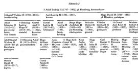 Hugo, Gilbert o Malcolm H:s äldste bror, Adolf Ludvig H (1820–96), var landshövding i Uppsala län 1862–93. Adolf H, som var dtrdtrson till Johan Eberhard Geijer (bd 17), blev i äktenskap med en dtr till Erik Gustaf Geijer far till författarinnan Anna Charlotta H-Geete (bd 16), statsrådet Hugo Erik Gustaf H (H 11) o Knut Archibald H (1855–1930). Knut H var landssekr i Uppsala län 1902–22 o tf landshövding där under Hj Hammarskjölds statsministertid 1914–17, i Kronobergs län 1917 o i Västmanlands län 1920–21 samt fick landshövdings titel 1921. Hugo H blev far till översten i Finlands armé Adolf Ludvig Knut H (1882–1919) o Knut H till den i USA verksamme professorn i pediatrik Bengt H (f 1892).