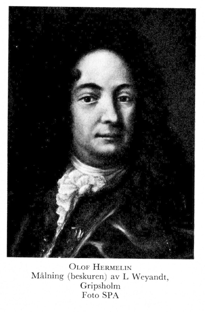 1 Hermelin (före 1678 Skragge), Olof Nilsson, dp 31 jan 1658 i Filipstad, d 28 juni 1709 vid Poltava eller i fångenskap därefter. Föräldrar: borgmästaren Nils Månsson o Karin Andersdtr. Inskr vid UU 12 sept 77, informator hos Gustav Otto Stenbock 80–84, prof i vältalighet o poesi i Dorpat 87, prof i juridik där 9 juli 95, k sekr o k historiograf 2 mars 99, sekr i k kansliets tyska exp 11 sept 01, adl 15 nov 02, kansliråd o statssekr 9 okt 05.