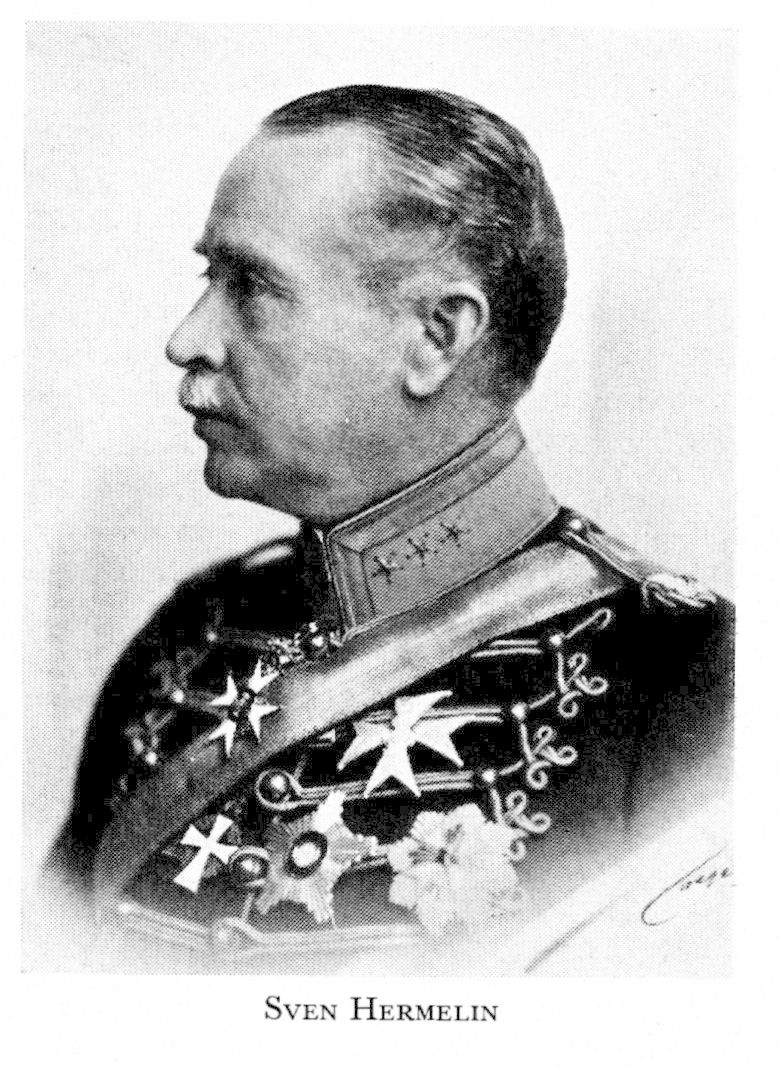 4 Hermelin, Sven David Alfred, f 8 febr 1856 i Eskilstuna Fors (Söd), d 23 mars 1923 i Sthlm (Osc). Föräldrar: godsägaren frih David H o Emma Elisabeth Hildegard Blüm. Volontär vid Södermanlands reg 5 mars 73, mogenhetsex vt 75, utex från krigsskolan 11 nov 76, underlöjtn i Södermanlands reg 24 nov 76, vid Livreg:s dragonkår 5 jan 77, genomgick ridskolan på Strömsholm 78—79, genomgick GCI 82—84, löjtn 1 juli 86, adjutant vid kåren 8 jan 90—20 jan 93, kompanioff o lär vid Karlberg 1 mars 90—27 juli 93, ordonnansoff hos kronprinsen 1 april 93—april 96, chef för kapplöpn:banan på Lindarängen 94—18, chef för Sthlms idrottspark 96—06, ryttmästare i Livreg:s dragoner 4 dec 96, ryttmästare av 1 kl o chef för livskvadronen 19 jan 01, major vid Skånska husarreg 1 juli 04, chef för 2:a bataljonen 21 aug 07, överstelöjtn vid reg 29 okt 07, avsked från reg o överste i 1:a arméfördeln:s reserv 16 juni 11, Stadionchef 11— 12, ordf i Sv skidförb 15—22, i Sveriges idrottsplatskomm från 20. — LKrVA 06.