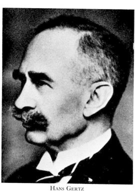 1 Gertz, Hans Valdemar, f 24 juni 1876 i Malmö (Caroli), d 4 jan 1938 i Sthlm (Engelbr). Föräldrar: kh Jöns Nilsson G o Maria Lundahl. Mogenhetsex vid Malmö h a l 6 juni 94, inskr vid LU 4 sept s å, med fil ex 14 sept 95, amanuens vid fysiologiska institutionen där 16 sept 96–31 aug 99, MK 28 febr 00, fältläkarstipendiat 4 nov 01–18 dec 03, amanuens vid Lunds oftalmiatriska klinik periodvis 04–05, ML vid LU 13 sept 05, amanuens vid Serafimerlasarettets oftalmiatriska klinik 1 okt 05–28 sept 06, praktis ögonläk i Hälsingborg okt 06–sept 09, i Sthlm från 1 april 10, doc i fysiologi vid LU 8 jan 13, laborator i samma ämne vid Karol inst 19 dec s å, medl av Nobelkommittén för fysiologi o medicin från 27, prof vid Karol inst 24 nov 28. Med hedersdr där 31 maj 24.