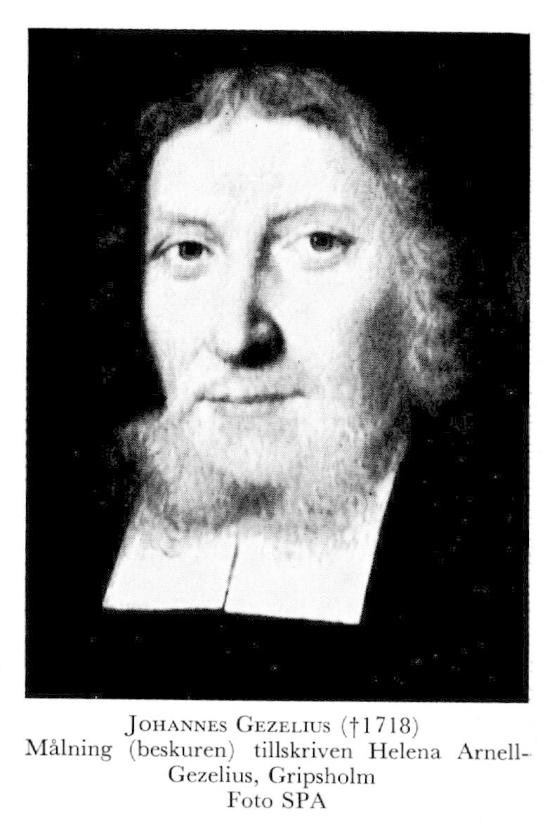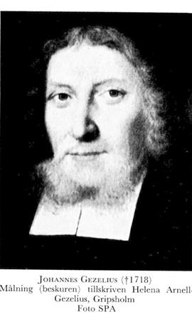 2 Gezelius, Johannes, son till G 1 i hans 1:a g, f 6 sept 1647 i Dorpat, d 10 april 1718 på Viggbyholm, Täby (Sth). Inskr vid UU 1 sept 61, i Riga 63, i Åbo 65, åter i Uppsala 67–70, studieresa till Holland, England, Frankrike, Tyskland o Schweiz 70–74, TL i Åbo 75, eo teol prof där 1 sept 75, TD där 13 juni 76, prästv 76, teol prof i Åbo 29 juli 79, rektor där 80, superintendent i Narva o Ingermanland 17 sept 81, erhöll Sagu i prebende 20 juni 89, biskop i Åbo o prokansler för Åbo akad 4 febr 90, skötte även Viborgs stift från 12.