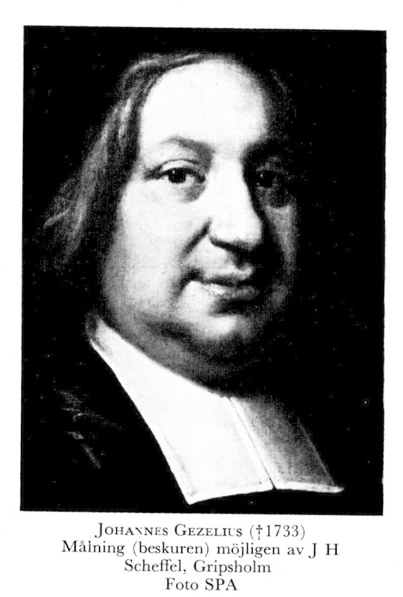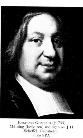 3 Gezelius, Johannes, son till G 2, f 6 maj 1686 i Narva, d 18 maj 1733 i Borgå, begr 11 mars 1734 i Åbo. Inskr vid Åbo akad 99, mag där 04, studerade vid skilda univ i Tyskland, Holland o England 04–09, eo teol prof vid Åbo akad 3 okt 10, erhöll Sagu i prebende 11, vistades i Sverige 13–20, 3:e teol prof i Åbo 7 jan 20, 2:e teol prof 2 juni s å, biskop i Borgå 18 okt 21, teol dr vid UU 23 febr 32.