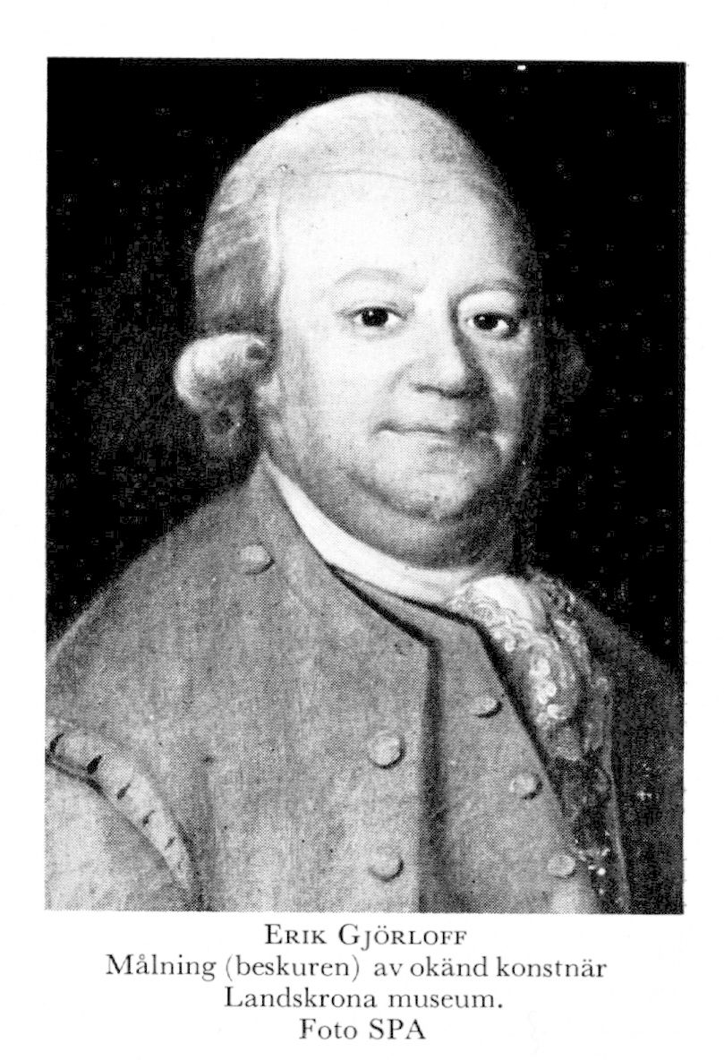 Gjörloff, Erik, f 1 (ej 2) dec 1732 i Malmö (S:t Petri), d 4 mars 1805 i Landskrona. Föräldrar: timmermästaren Mattias Eriksson o Katarina Persdtr. Kallas G redan i moderns bouppt 44, köpmansbetjänt (bodbetjänt) i Landskrona senast 53 o ännu 58, borgare o handelsman där 23 nov 63, riksdagsman 78–79, direktörs titel 9 febr 79.