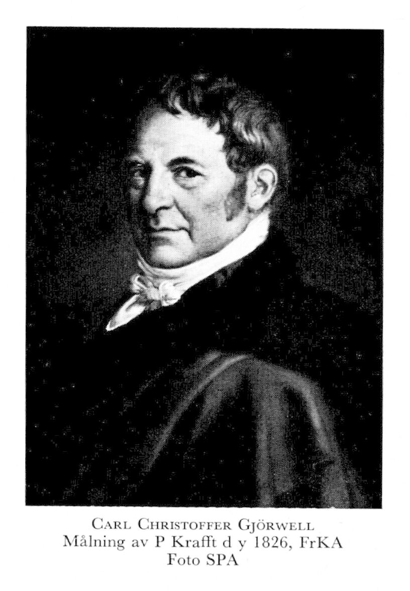 2 Gjörwell, Carl Christoffer, son till G 1, f 19 jan 1766 i Sthlm (Jak), d 14 nov 1837 där (ibid). Studerade vid FrKA, erhöll belöningar där 86 o 88, elev till L J Desprez 88, anställd vid stadsarkitektkontoret i Sthlm 92 o ånyo 96, studieresa till utlandet 94–96, agreé vid FrKA 96, stadsarkitekt i Sthlm 14 okt 03, k arkitekt s å; prof:s namn 08. – LFrKA 03.