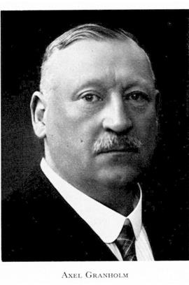 Granholm, Axel Magnus, f 19 aug 1872 i Smedjebacken (Kopp), d 6 juli 1951 i Sthlm (S:t Göran). Föräldrar: handl Axel G o Clara Mathilda Carlsson. Mogenhetsex i Falun 90, utex från KTH (väg o vatten) vt 94, ingenjörselev somrarna 92—93, ing vid stambanebyggn i övre Norrland våren 94, bitr ing hos lantbruksing i Kopparbergs län 94—maj 97, åter bitr ing vid SJ, vid sträckan Krylbo—Örebro 98, avd:ing vid riksgränsbanan 99—02, avd ring vid Sthlms bangårdsombyggnader, vid Bohusbanan 03—07, arbetschef där 07—08, vid banbyggn Bastuträsk—Skellefteå—Kallholmen 08—10, chef för kraftverksbygget vid Porjus okt 10, generaldir o chef för SJ 7 nov 13—31 dec 37. Ordf i styr för ab Aerotransport 37—43, i 1938 års järnvägstaxekommitté, i Statens tiafikkommission 40—43, i kommittén för omorg av Telegrafverket 40, i verkstadskommittén för väg- o vattenbyggnadsväs 45. — 1:e HedLIVA 32, LKrVA 33, Iqml 18:e storl 43.