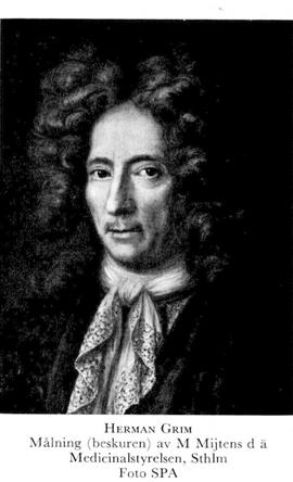 Grim, Herman Nicolai, f 1641 i Visby, d 8 april 1711 i Sthlm. Son till hovfältskären Nils G. Efter studier trol i Köpenhamn o Holland skeppskirurg i holländsk tjänst 64— 65, läkare i Fredericia 68, läkare på Ceylon o Java i holländska ostind komp:s tjänst 71—81, stadsläk i Nyköping trol 83—86, därefter stadsläkare i Aurich, Ostfriesland o garnisonsläk i Tönningen, läkarpraktik i Visby 97, laborant på Laboratorium chymicum i Sthlm 23 sept 98, åter i Visby 99— 04, led av Collegium medicum i Sthlm 25 nov 04, pestläkare i Sthlm aug 10.