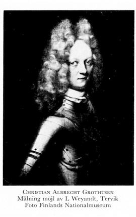 Grothusen, Christian Albrecht, f 19 okt 1680 i Slesvig, d 16 nov 1715 på Rügen. Föräldrar: överkommendanten frih Otto Johan G o Margareta v Behr. Fänrik i sv tjänst 97, kapten vid Liewens livländska infanterireg 17 april 01, konfirm:fullm 24 juni 01, överstelöjtn vid Dückers dragonreg 12 dec 03, överste vid Nylands o Tavastehus läns kavallerireg 1 febr 10, löjtn vid livdrabantkåren 11 nov 10, kommendant på Usedom 15, generalmajor av kavalleriet samt överste för Bohusläns dragonreg 14 april 15. — Ogift.