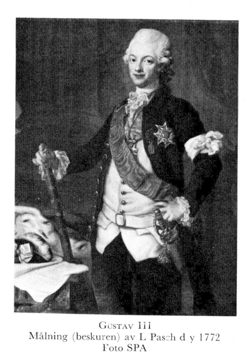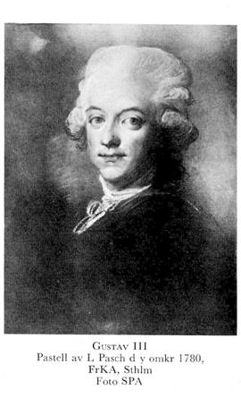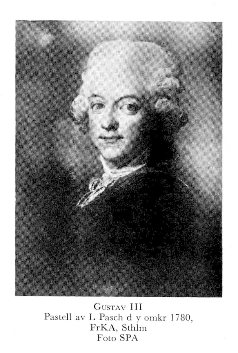Gustav III, f 24 jan 1746 i Kungshuset, Sthlm, d 29 mars 1792 på Sthlms slott. Föräldrar: konung Adolf Fredrik o Lovisa Ulrika av Preussen. Kronprins 25 mars 51, konung av Sverige o hertig av Pommern 12 febr 71, krönt i Sthlms storkyrka 29 maj 72.