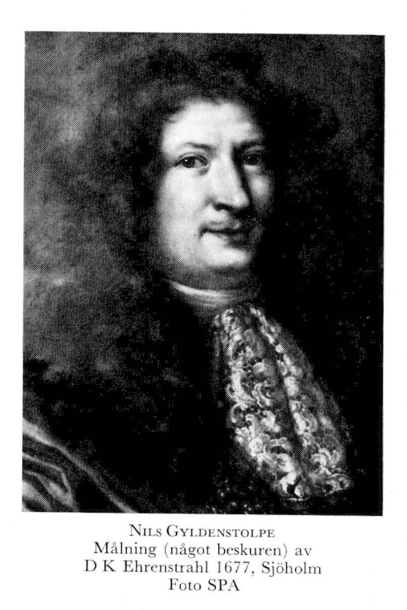 2 Gyldenstolpe, Nils, son till G 1, f 5 nov 1642 i Åbo, d 4, själaringn 5 maj 1709 i Sthlm (Nik). Inskr vid Åbo akad 50, anställd i kansliet 63, sekr i justitierevisionen 29 juli 64, revisionssekr 29 nov 65, häradsh i Vättle o Askim med Ö Hisingen (Älvsb) 17 okt 70 (fullm konf 16 juni 80)—85, legationssekr till Khvn 31 juli 75, kommissionssekr:s fullm 19 april 76, eo envoyé i Haag 8 mars 79, envoyé 28 okt 79, hovkansler 18 aug 87, frih 10 dec 87, lantmarskalk vid riksdagen 89 (förordn 3 febr), k råd o kansliråd samt prins Karls guvernör 21 juni 90, ordf i lagkommissionen s d, greve 1 okt 90, LU:s kansler 20 okt 90, medl av Karl XII:s förmyndarstyr 97, kanslipresident 21 dec 05.