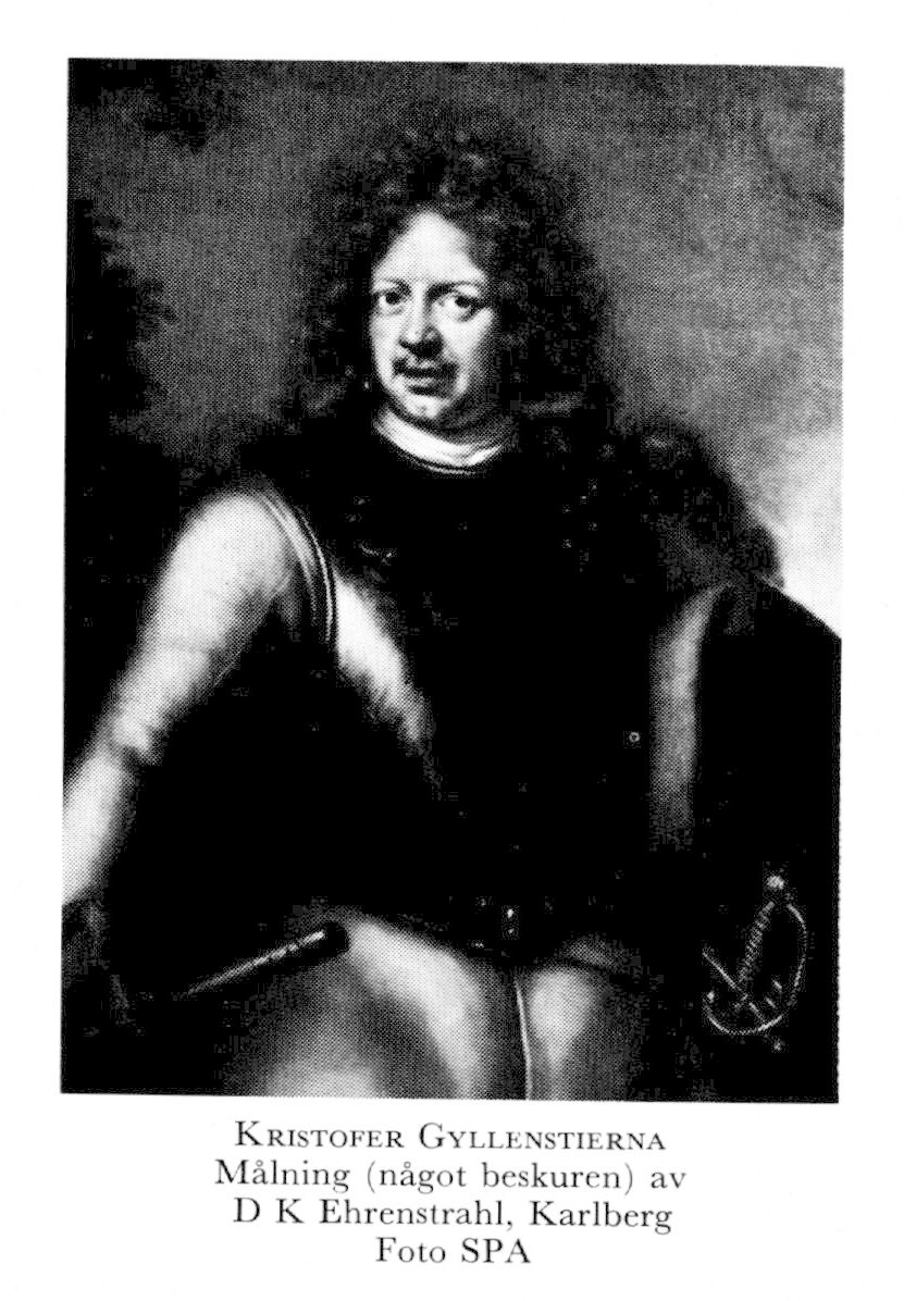 7 Gyllenstierna, Kristofer, bror till G 6, f 17 nov 1639 på Viborgs slott, d 14 juni 1705 i Sthlm (själaringn 15 juni i Jak). Inskr vid UU 24 maj 53, kammarherre 65, kompanichef med överstelöjtn:s grad vid Livgardet 26 aug 68, överste där 29 okt 73, generalmajor 19 aug 76, generallöjtn 16 febr 77, guvernör över Västernorrland 9 juni 77 (tilltr ej), led av kammarkommissionen 7 dec 80, riksråd 10 sept 81, överståth 28 april 82, led av likvidationskomm över stora komm:s domar 27 maj 82, placerad i reduktionskoll 10 sept 84, greve (G af Ericsberg) 10 dec 87, i reduktionsdeput 17 dec 87, förmyndare för Karl XII 97.