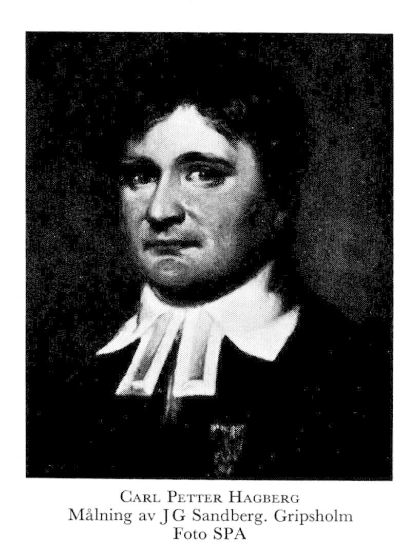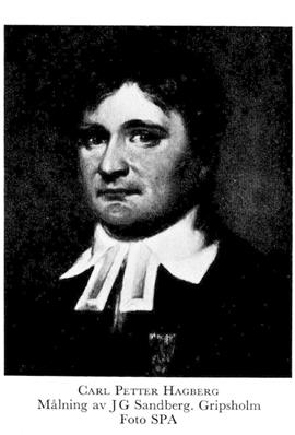 1 Hagberg, Carl Petter, f 23 nov 1778 i Rasbo (Upps), d 15 sept 1841 i Sthlm (Nik). Föräldrar: mjölnaren Carl Persson H o Barbro Catharina (Caisa) Hallström. Inskr vid UU 12 juni 95, mag 16 juni 03, prästv i Uppsala o huspredikant hos greve J G Oxenstierna 15 dec 03, pastorsadjunkt i Nikolai förs (Sthlm) 18 juni 05—09, eo hovpredikant hos änkedrottn Sofia Magdalena 19 nov 06, ord 15 okt 08, pastoralex i Uppsala 5 juni 07, seminarieprefekt i Lund o kh i S:t Peters kloster o N Nöbbelöv (Malm) 27 april 09, TD vid UU 7 okt 09, prof i pastoralteologi o seminariedirektor vid LU 30 okt 11, kh i Klara förs (Sthlm) 29 nov 15, led av prästeståndet 17—18 o 40—41, ordenskaplan 7 okt 17—21 april 25, överrevisor av krigsräkenskaperna 18—22, fullm i riksbanken 18—27, överhovpredikant hos änkedrottn Hedvig Elisabeth Charlotta 18 mars 18, led av 1811 års psalmbokskommitté 18, kh i Rasbo o Rasbokil (Upps) 11 juli 23 (tilltr 1 maj 25), led av kommittén för överseende av rikets allm undervisn:verk (stora uppfostringskommittén) 21 dec 25— 20 dec 28, kh i Nikolai förs (Sthlm) 13 dec 37 (tilltr 1 maj 40), fullm i riksgäldskontoret från 7 aug 40. — Led av Samf Pro fide et christianismo 06 (preses 19—20), SA:s dubbla stora pris i vältalighet 08, LSA 21.