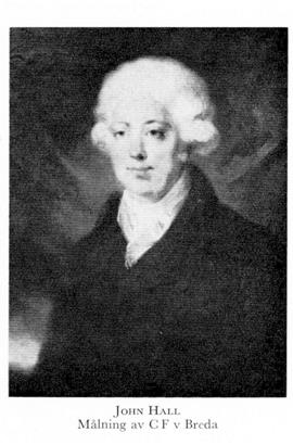 1 Hall, John, f 15 febr 1735 trol i Gbg, d 2 okt 1802 där (Domk). Föräldrar: köpmannen Benjamin H o Cornelia Åkesson. Burskap i Gbg 9 maj 55, deläg i firman Robert & John Hall resp John & Benjamin Hall 55—66, innehavare av John Hall & Co från 67.