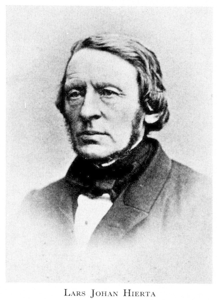 4 Hierta, Lars Johan, f 23 jan 1801 i Uppsala, d 20 nov 1872 i Sthlm, Klara. Föräldrar: akademiräntmästaren Carl Didrik H o Hedvig Johanna Schméer. Inskr vid UU 13 dec 02, FK där 22 nov 20, auskultant i bergskoll 29 jan 21, mag vid UU 14 juni 21, JK där 10 dec 21, auskultant i kommerskoll 1 april 22, riddarhuskanslist 23, v notarie i bergskoll 23 dec 24, konstit notarie där 30 juni 25, tf sekr där under längre o kortare tider 22 febr 26—30 nov 30, riddarhusnotarie 28—30, boktryckare i Sthlm 29— 51, deltog i riksdagarna 28—58 (riddarhuset), 59—66 (borgarståndet; led av statsutsk) o 67—72 (AK; ålderspresident, led av statsutsk 67—70, konstit:utsk 71—72), drev förlagsverksamhet 29—71, utg av tidn Aftonbladet 30—51, avsked från bergskoll 13 juni 33, grundade Liljeholmens stearinljusfabrik 39, burskap som grosshandl i Sthlm 17 jan 54, bankofullm 60—67, en av stiftarna av Munksjö pappersbruk 62, led av Sthlms stadsfullm 63—71. Grosshandl o industriidkare.